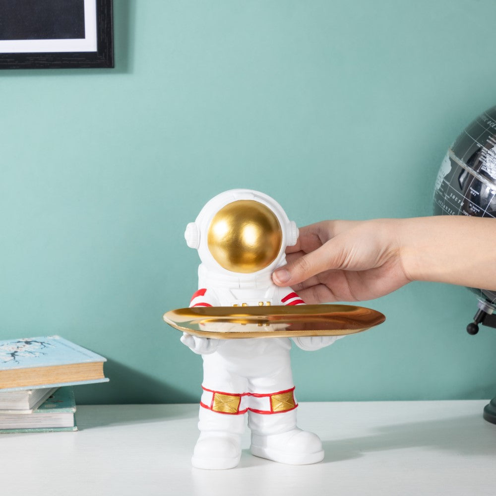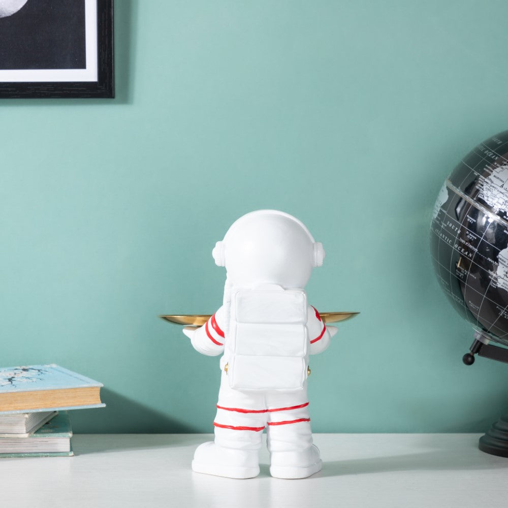 Transform your living space into an out-of-this-world experience with our astronaut statue showpiece that comes with a trinkets tray. This stunning resin showpiece features an intricately detailed astronaut holding a gold trinket dish, making it the perfect home decor item to display your favorite trinkets and small accessories. The golden trinket tray is the perfect spot to store your keys or pieces of jewelry, while the astronaut itself is a quirky home decor ornament that will make you starry-eyed.