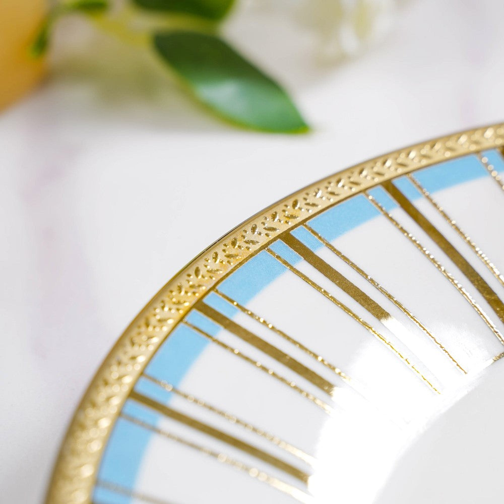 Add a fresh and unique element to the tablescape with the vibrant ceramic dinner plate. The blue and gold intertwine over the white ceramic to create intricate patterns which make the plate ideal for any table setting or even as a decorative piece. The ceramic plate is ideal to be incorporated in festive lunch or dinner settings as it's sure to enliven the ambiance.