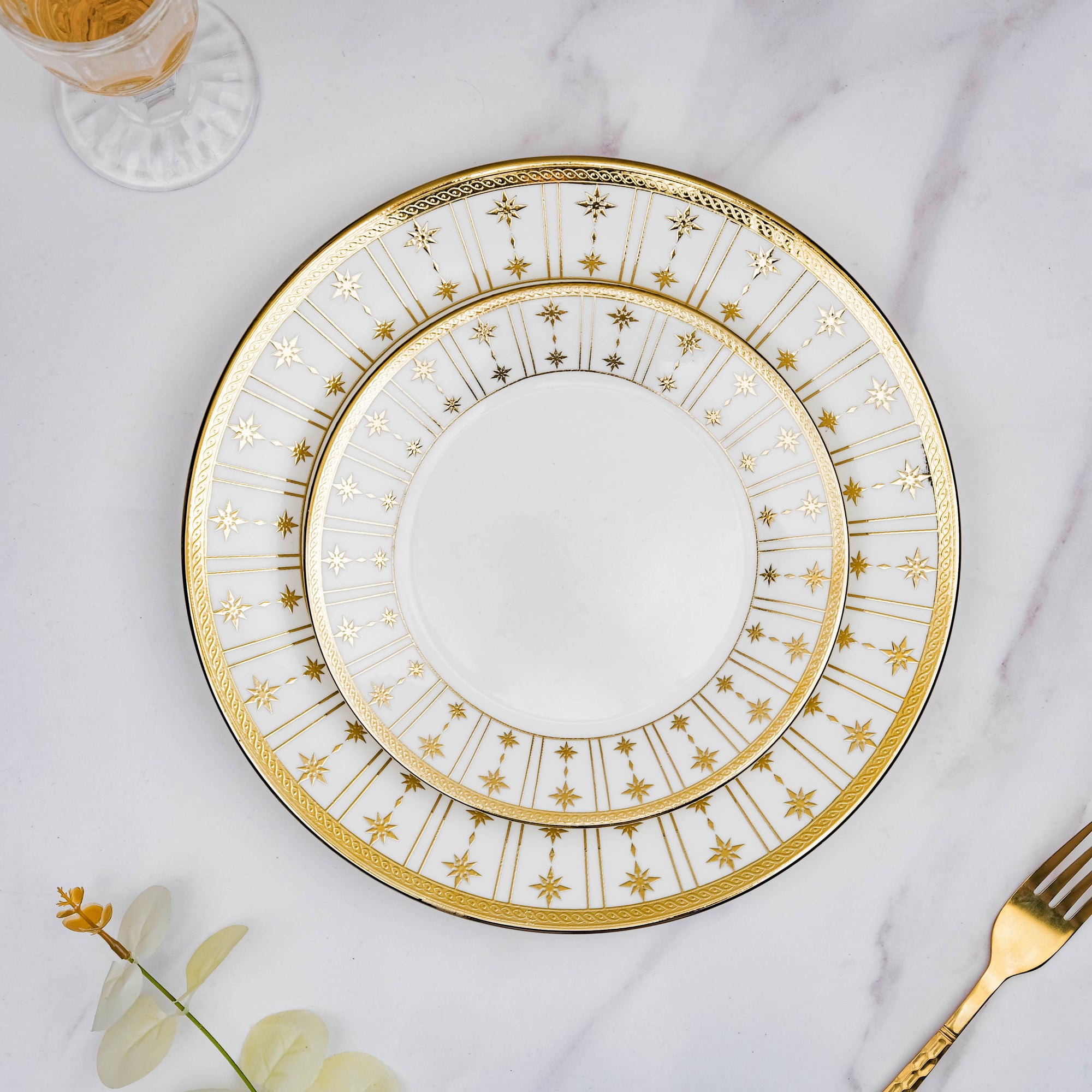 Serve an array of snacks or a curated salad of choice, on the ceramic plate that oozes luxury. The plate has a gold patterned rim with intricate detailing. The glazed ceramic along with the lustrous gold, adds to the premiumness of the plate. The vibrant gold designs on the ceramic plate brightens up the spirit around the table. The plate with its stunning design, is ideal for a festive or a formal feast. Nestip: The plate may also be used to serve kebabs. Size: 7.2” D x 0.7” H (18.5cm D x 2 cm H) Color: White and gold Material: Ceramic Products included: 1 plate Style: CFDH83C30