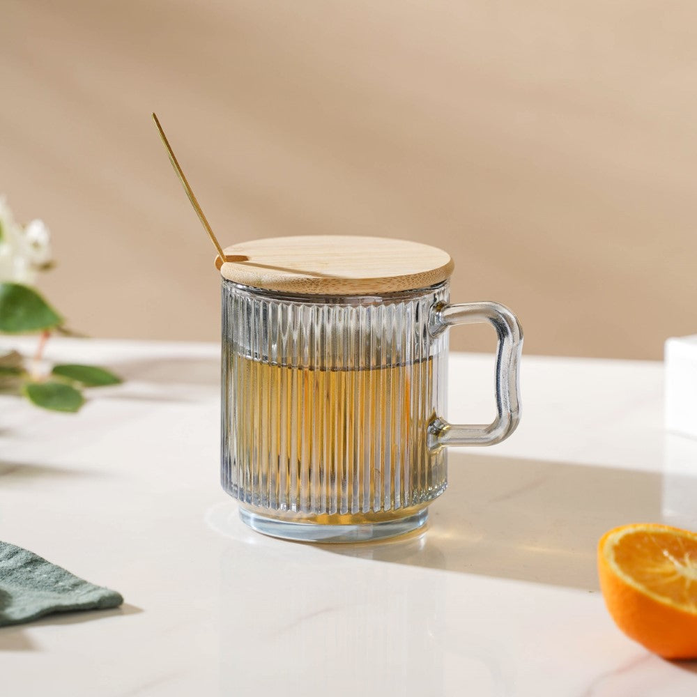 The tempered glass material of this glassware is resistant to high heat and it's 100% microwave-safe. Just remember to remove the wooden lid and spoon while heating the Aurora glass mug in the microwave. You can simply chuck the glass mug inside the microwave without the lid and spoon to have a steaming cup of coffee.