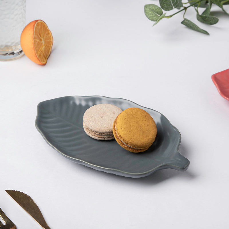 Autumn Grey Leaf Snack Plate 8.5 Inch