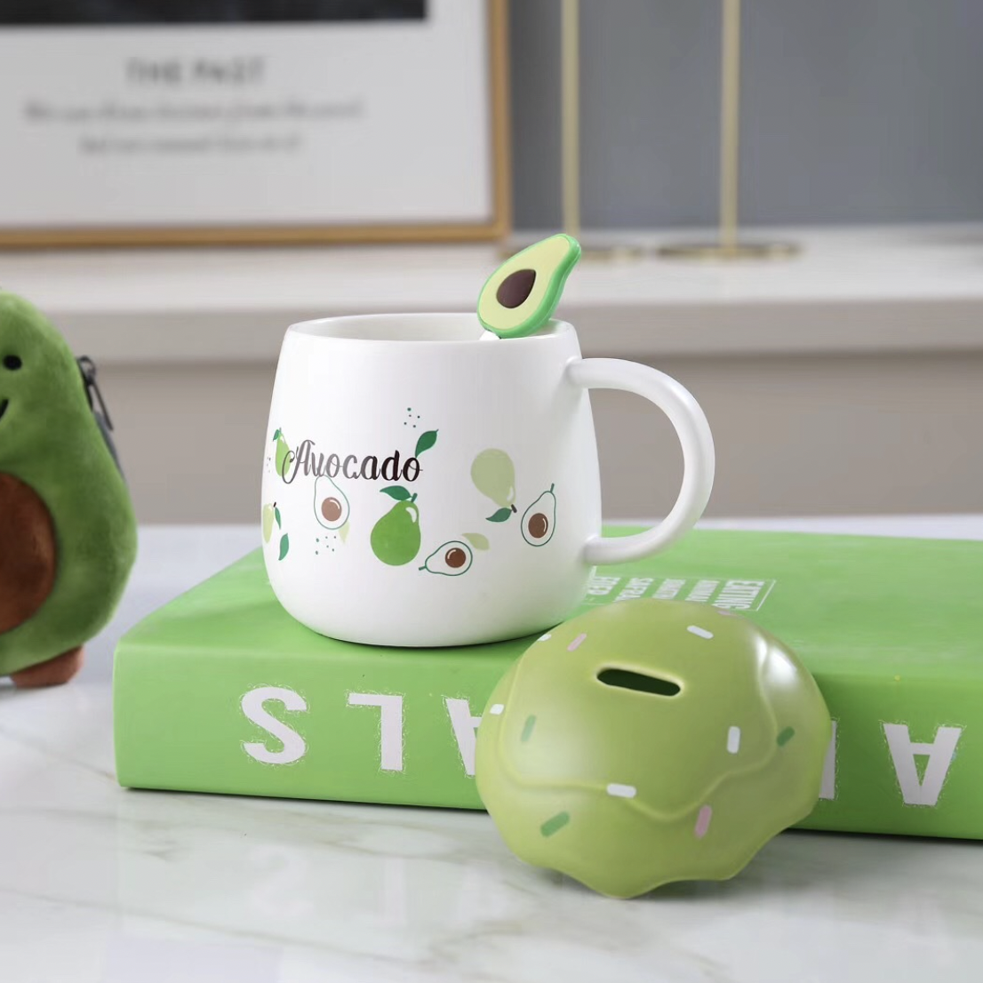 The green avocado cup is crafted in ceramic and comes with a spoon and lid. The ceramic cup comes in four variants and has been designed to stand out in a quirky setup. One can use the cup for storing knick-knacks and tiny essentials. The aesthetic beauty of the cup lies in its perfect blend of design, form, and design. The well-balanced use of white with green adds a touch of funkiness to the mug. The lid design is wavy in nature which adds an element of uniqueness to its design. The cavity for placing the spoon is made in the center of the lid rather than towards the periphery. Nestip: One can combine all four variants and gift the cup set on a birthday or housewarming event. Size: Cup- 8cm D x 10.5cm H (with lid) Length of cup with handle- 12cm Length of spoon- 13cmCapacity- 350ml Color: Green and white Material: Ceramic Products included: 1 mug with lid and spoon Style: Nice day- HCB53S32 Happy day- HCB53S139 Be some one new- HCB53S140 Avocado- HCB53S141