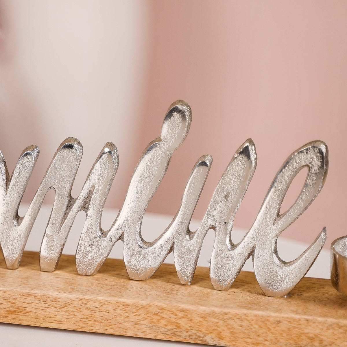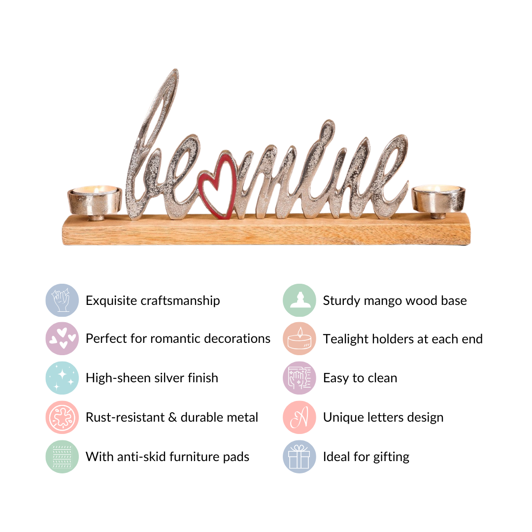 Transform your space into a haven of love with our exquisite tealight holder that can also be used as an elegant decor piece. The high-sheen silver finish exudes a timeless allure, while the sturdy mango wood base ensures stability and longevity. The unique letter design adds a touch of individuality to your romantic decor, making every moment special. Equipped with anti-skid furniture pads, the candle holder is easy to clean and maintain, allowing you to focus on creating memorable experiences. With two tealight holders casting a warm glow, this piece is not just a decor item but a symbol of affection, making it an ideal choice for gifting or enhancing your romantic celebrations.