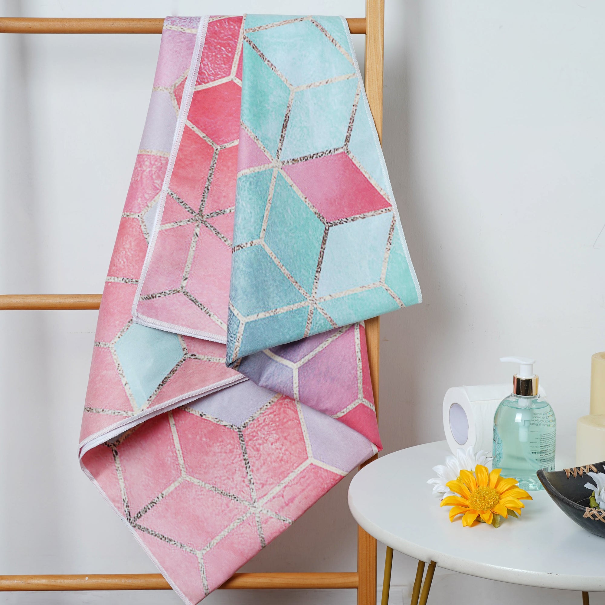 Abstract print towel of high quality thin fabric which feel soft and fresh against the skin after a long refreshing shower. Made of good quality material, the soft towel is available in a vivid green and pink palette. Super lightweight, the bath towel is extremely comfortable to use and dries super easily. The bath towel is mostly used as a pool side towel or a beach towel.