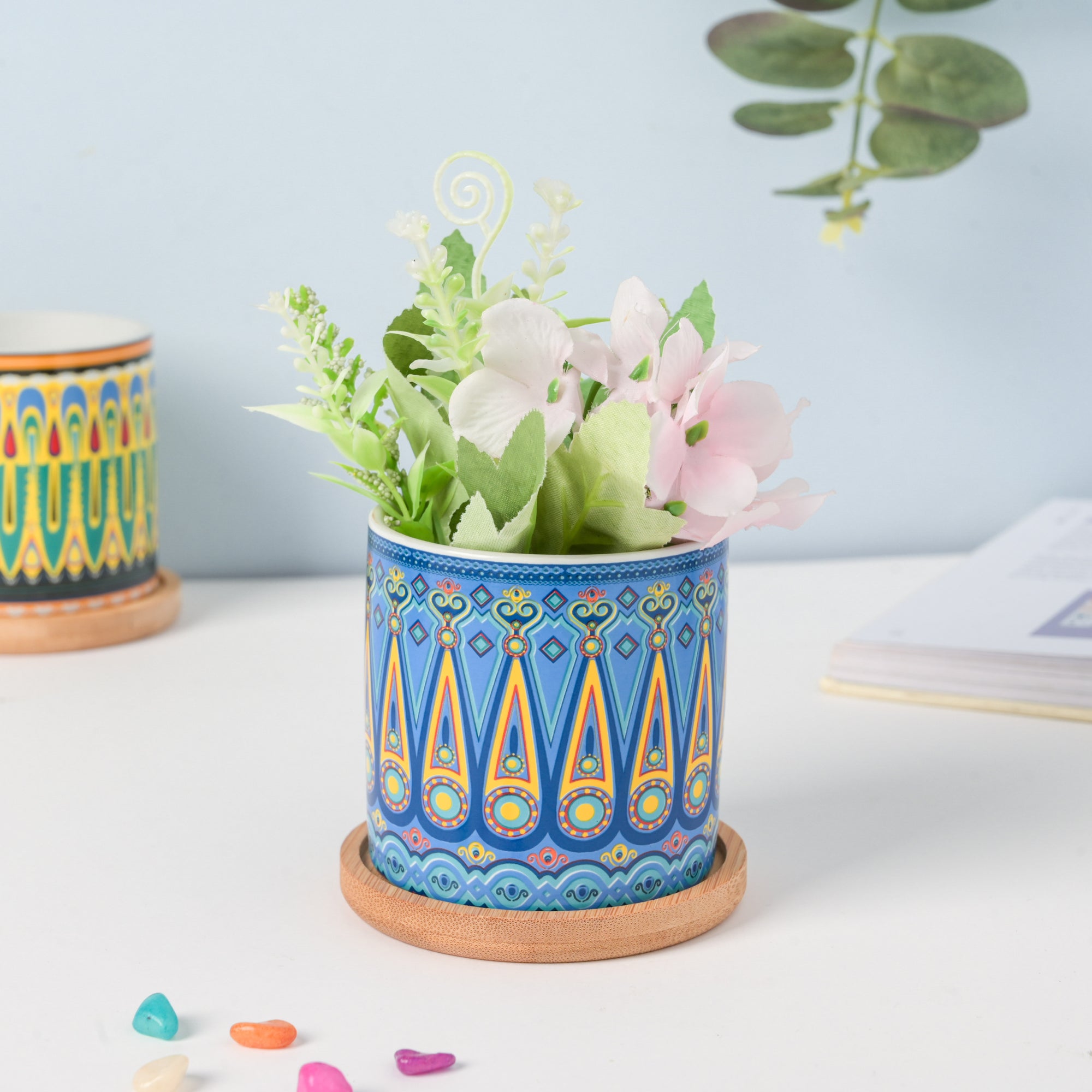 Beaming Blue Traditional Planter With Coaster