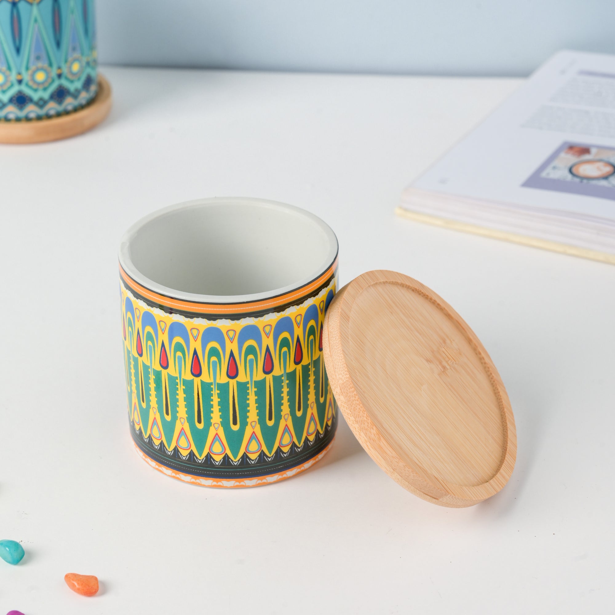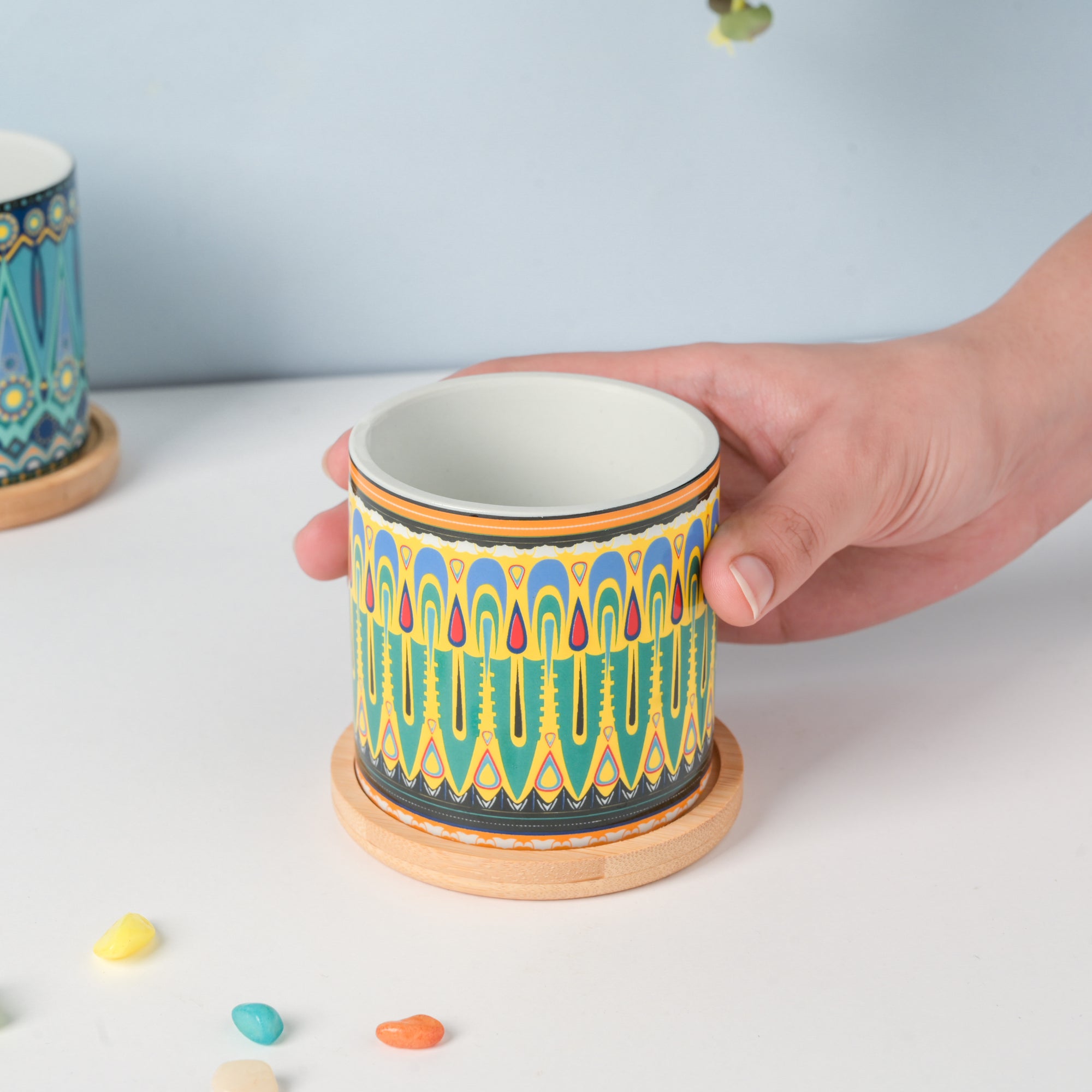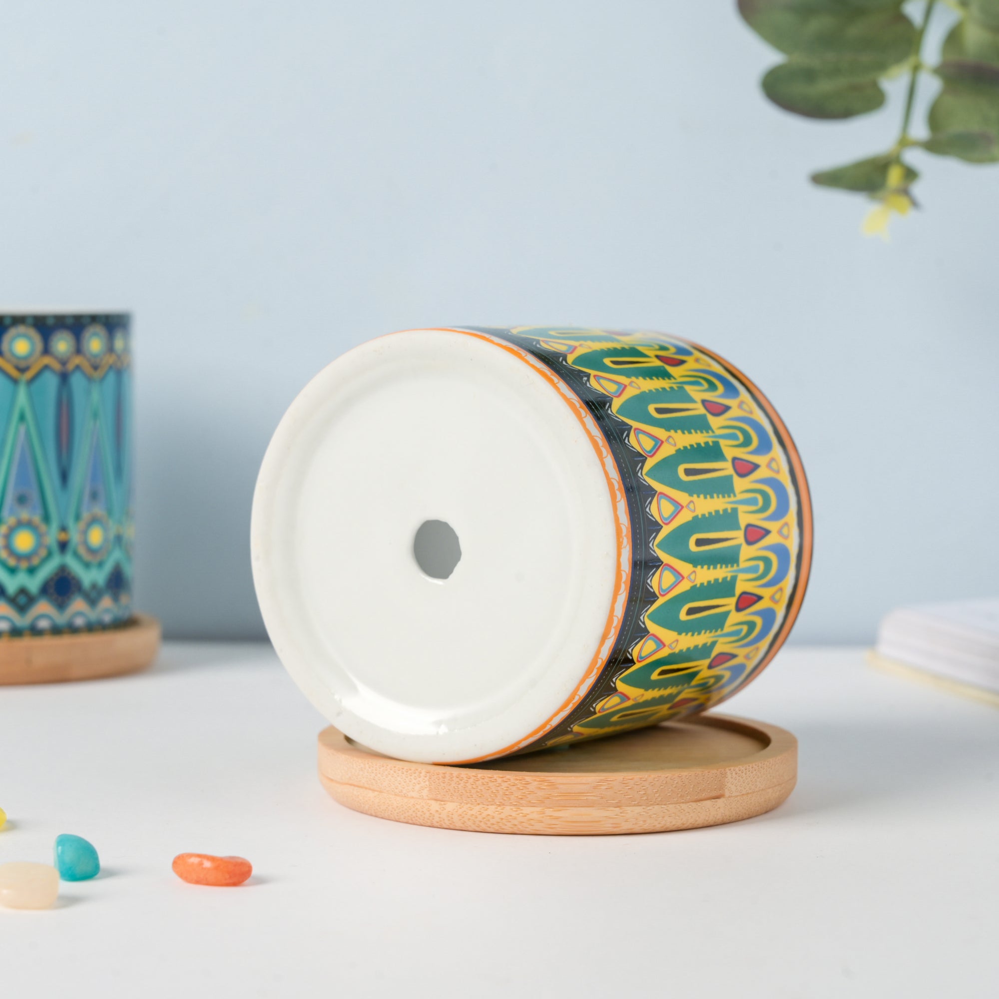 Bring the vibrantly patterned planter to the home to give the décor a dazzling touch. Made of ceramic, the bright and colourful planter is full of charm and elegance and allows one to grow their favourite indoor plants or place the planter as a decor accent. A circular wooden coaster comes along with the planter to be placed at the base for collecting excess water.