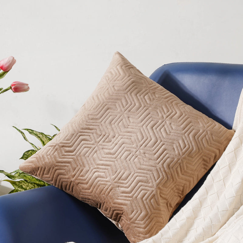 Adorned with a modish design and geometric surface ornamentation, this stylish cushion cover forms the perfect companion for a sofa or bed with upholstery or bedcover of neutral shades. It has been tailored into a square shape with a soft silhouette to bring out the ultimate comfort and coziness. The cushion cover is a perfect amalgamation of class and comfort.