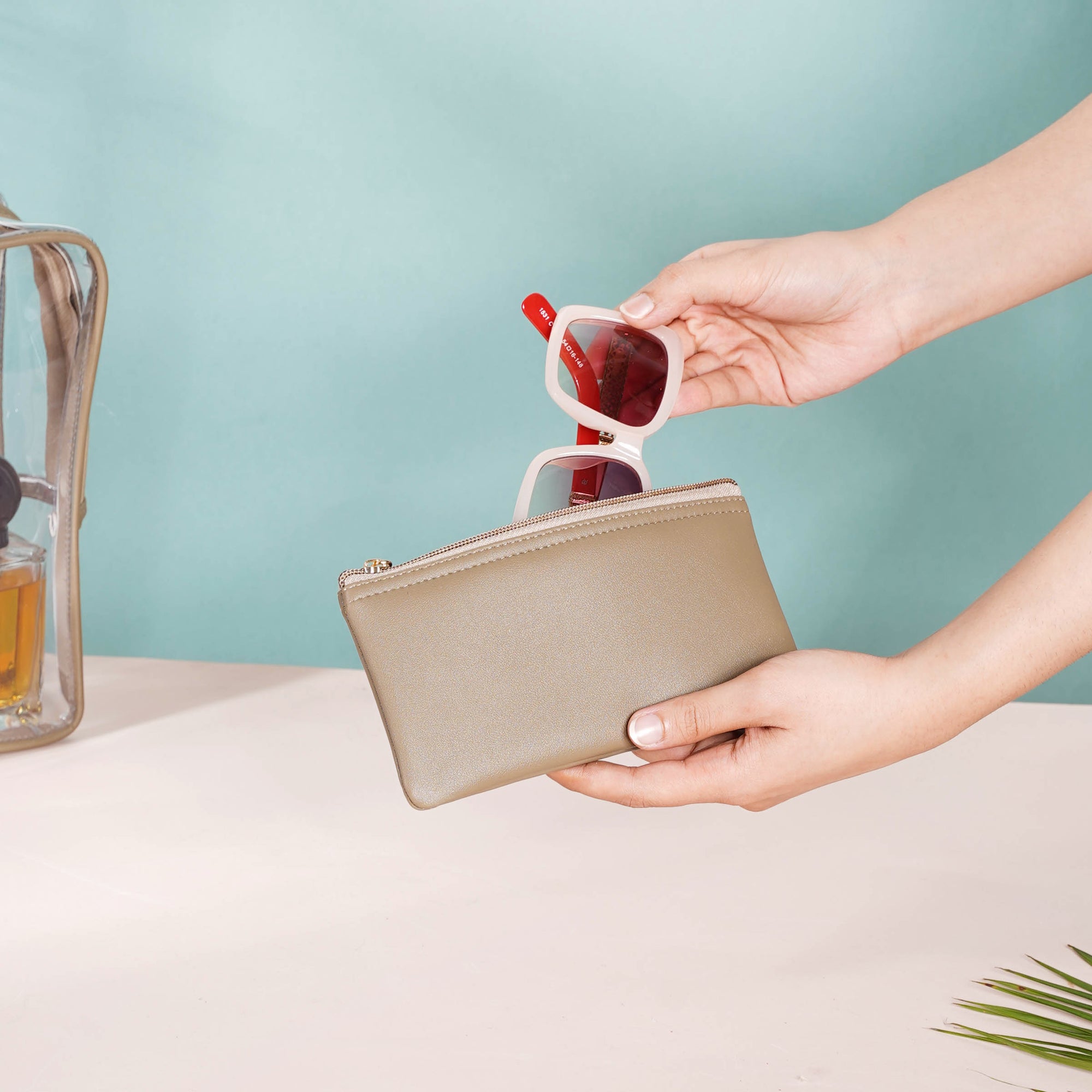 The smaller pouch can be used for carrying passports and other important documents. You can also use it to keep your sunglasses or sunscreen lotions.