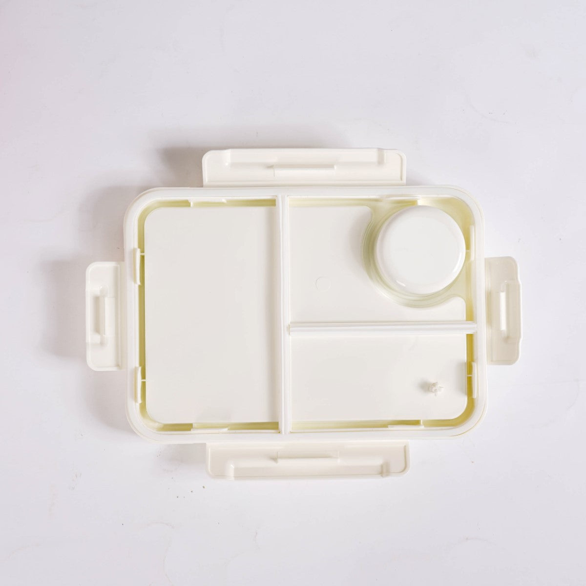 304-grade stainless steel construction Food-safe & BPA-free materials Inner primary stainless steel tray detachable Stainless steel tray with 4 compartments Lower PVC basin for warm water insulation Top lid with a section housing 1 spoon & fork set Top lid with a detachable PVC bowl 1 detachable stainless steel bowl with lid inside