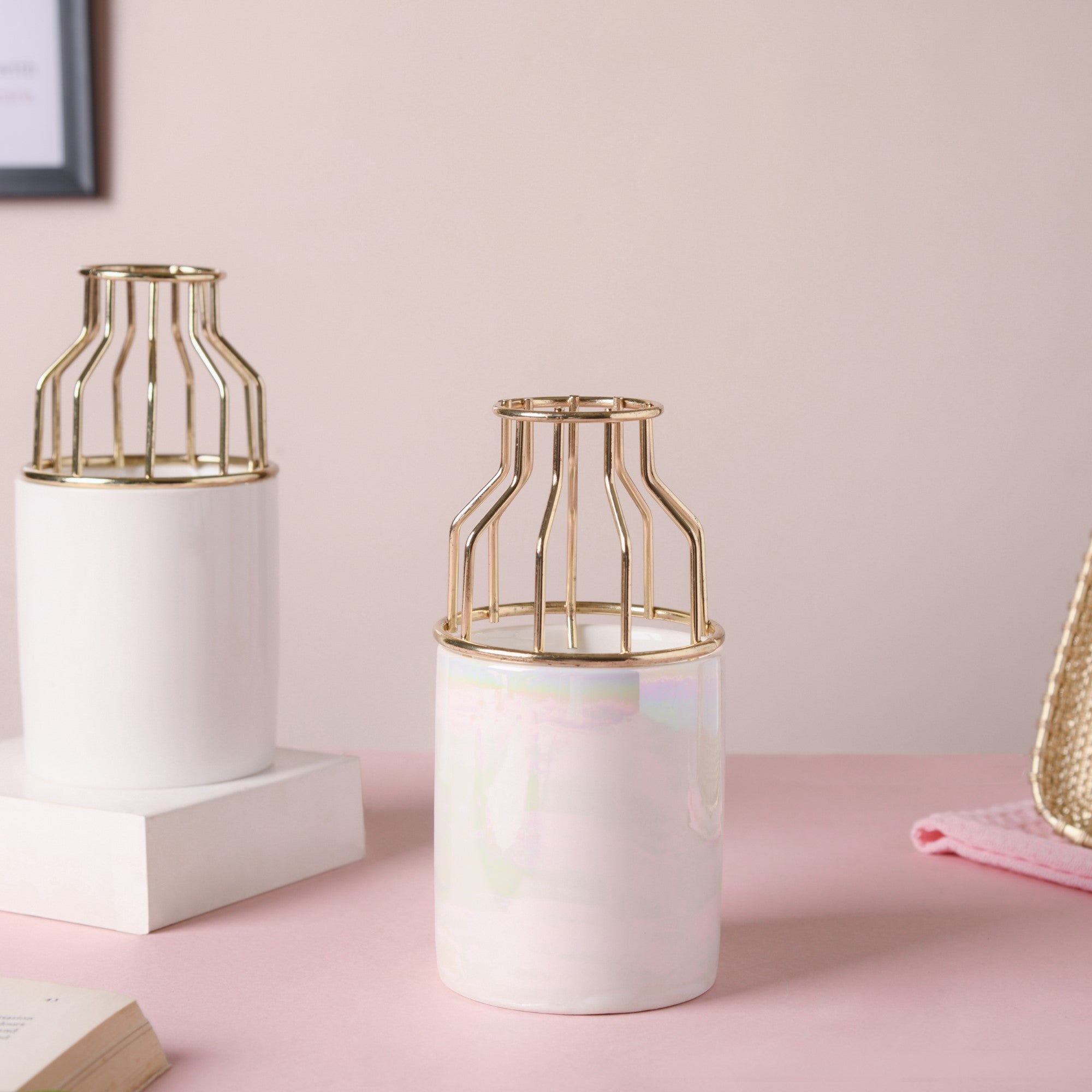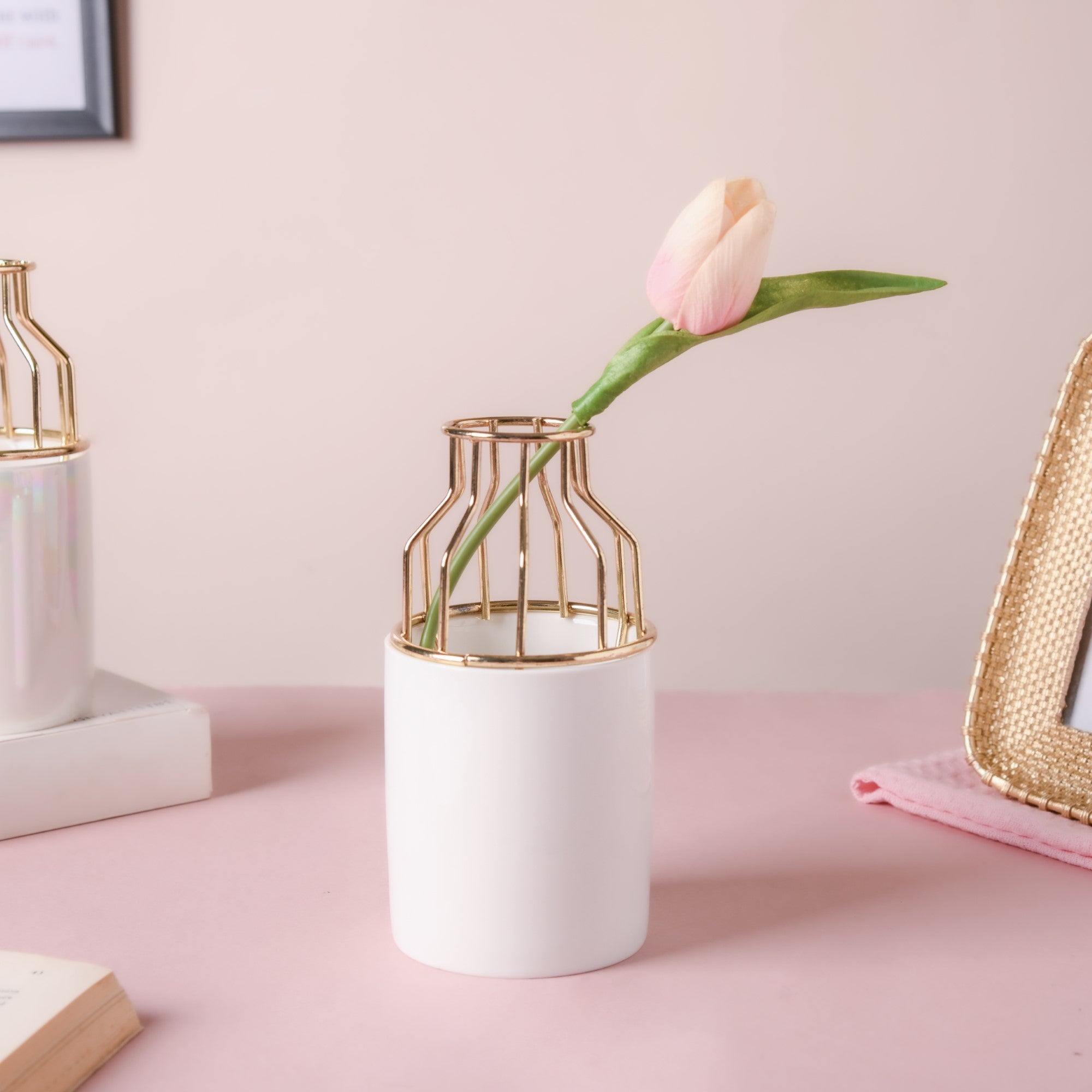 Sleek and fashionable the vase planter comes with a metal top attached. The planter would add that extra class to one’s home. The planter is a treat for all nature enthusiast and is perfect for displaying indoor plants.