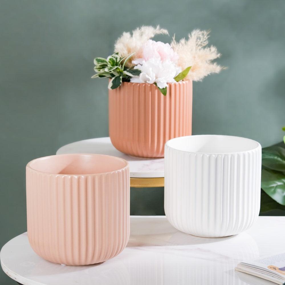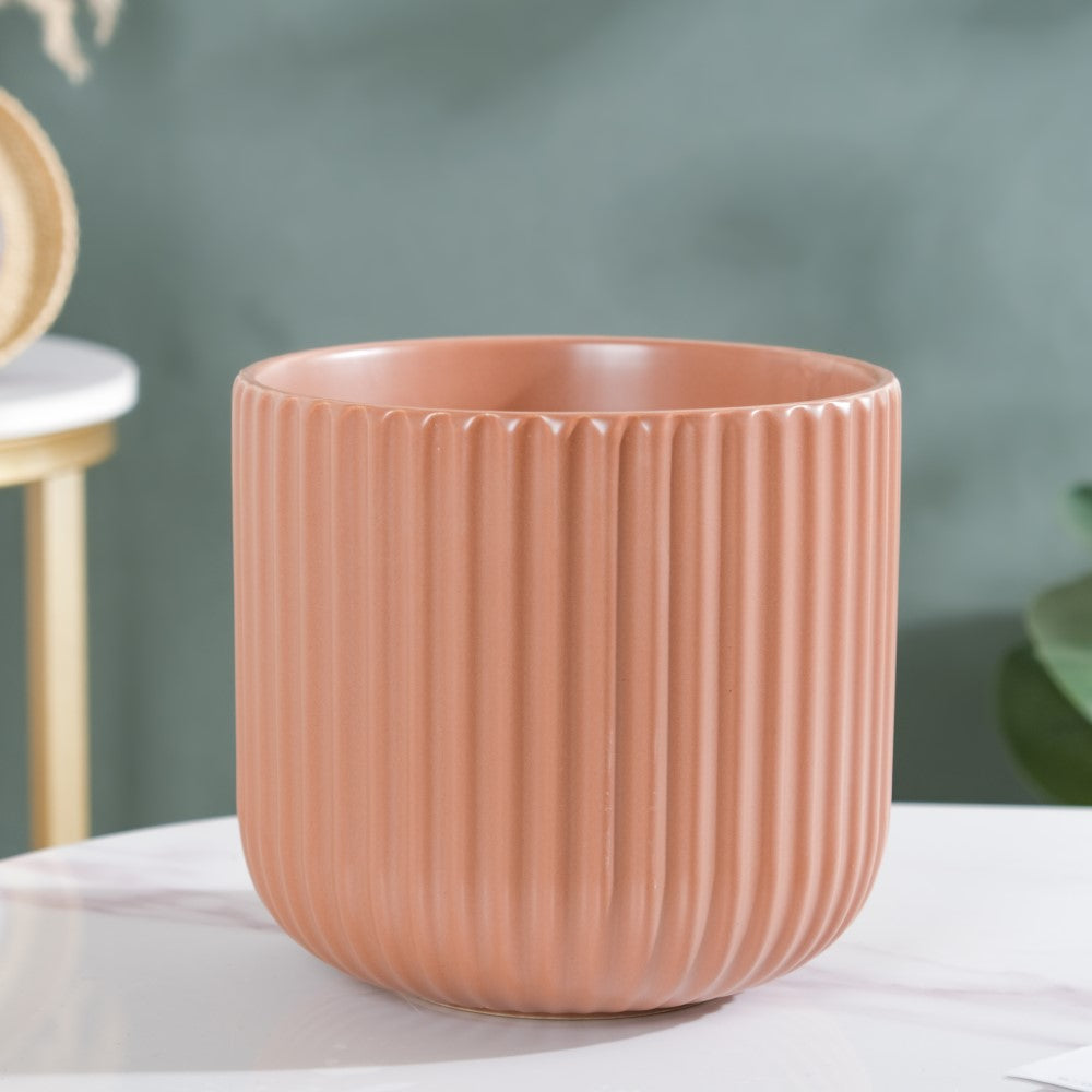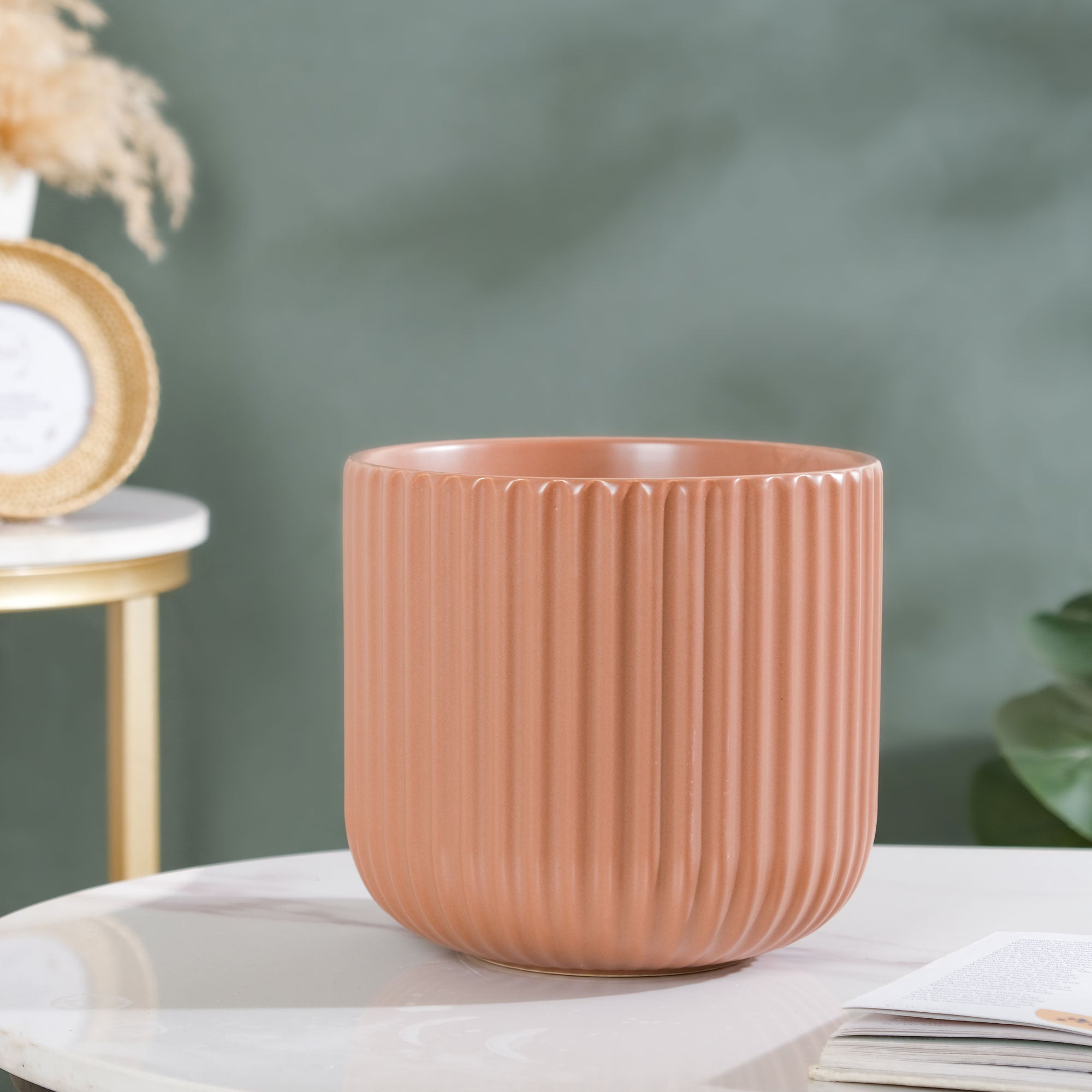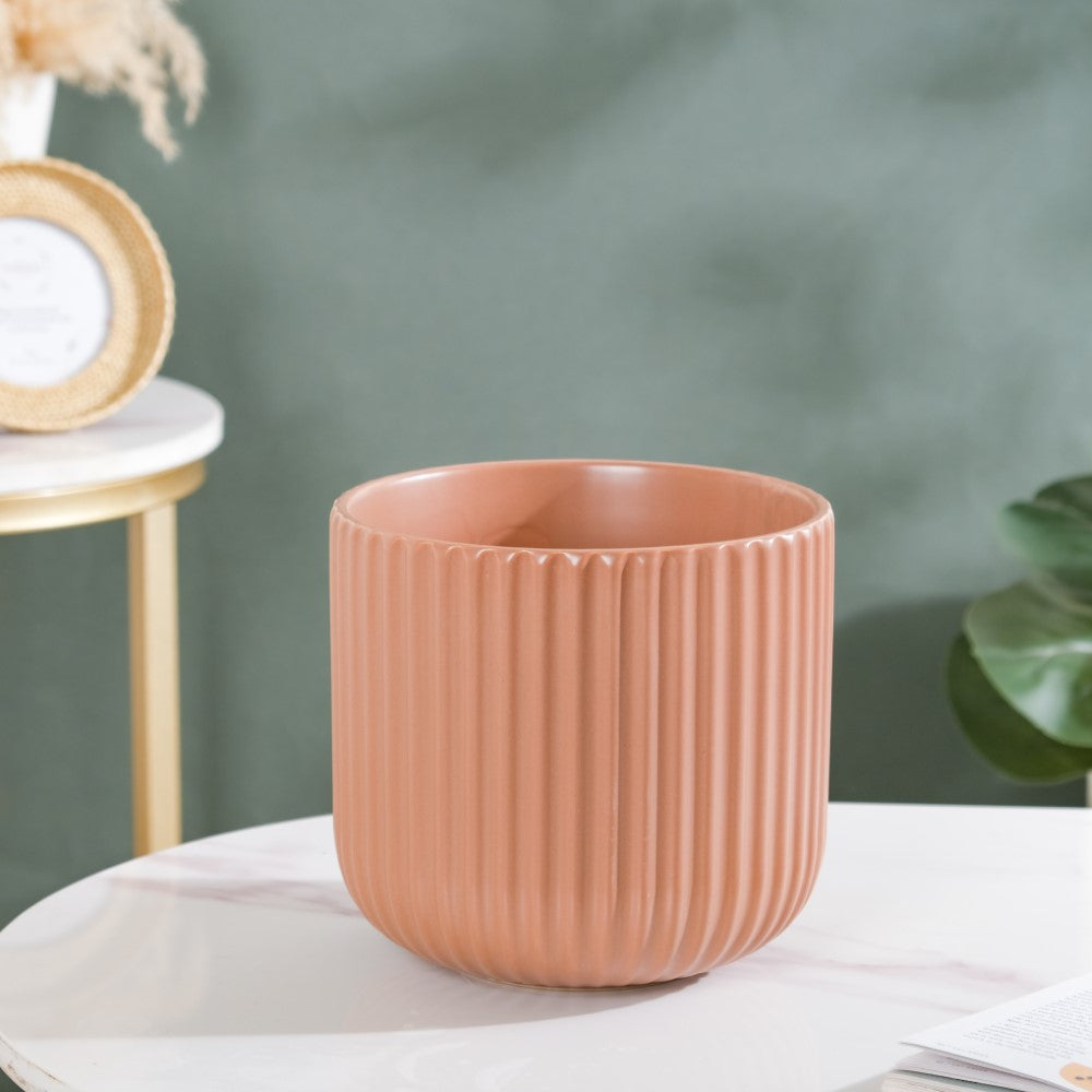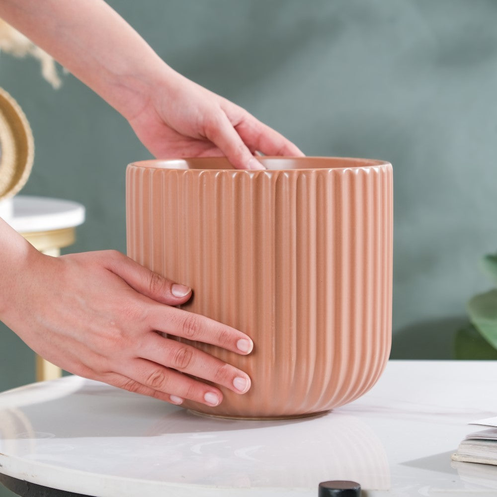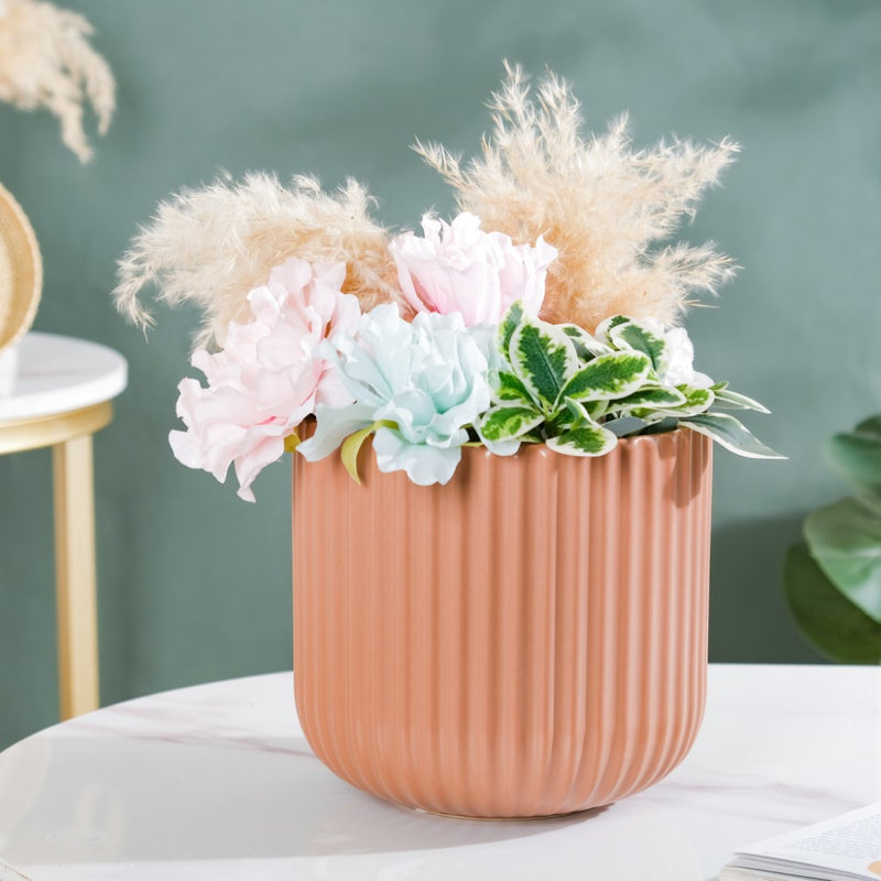 Be ready to elevate the bedroom design or the living room interior design with the ribbed brown flower vase. The pastel shade of brown gives it an earthy look while the ribbed texture adds a modern vibe. It's surely one of a kind in the list of attractive plant pots due to its durability and ample inner space for the buds and flowers to be seated comfortably. The brown pastel coloured flower vase can be gifted to friends and colleagues on various festive or congratulatory occasions.