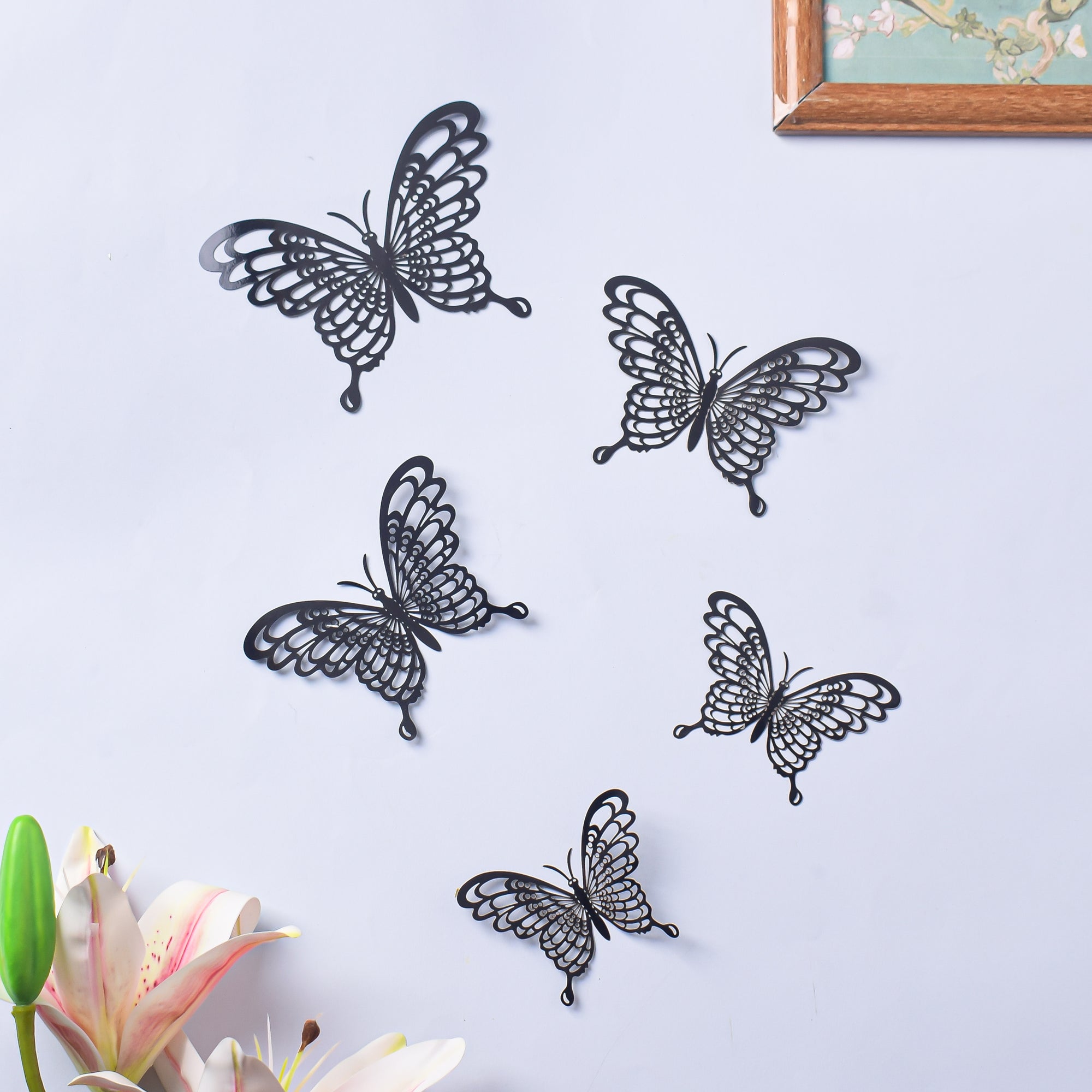 Crafted in laser-cut technique with durable and lightweight foil, the stickers are one of a kind. The foil stickers are ideal for decorating the living spaces of homes as well as commercial spaces such as offices, schools, and colleges. Make sure the surfaces are clean before sticking the 3D butterfly stickers.