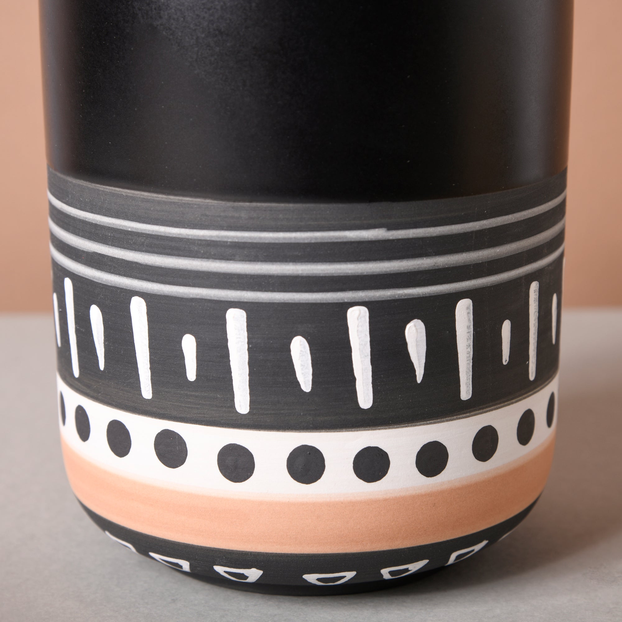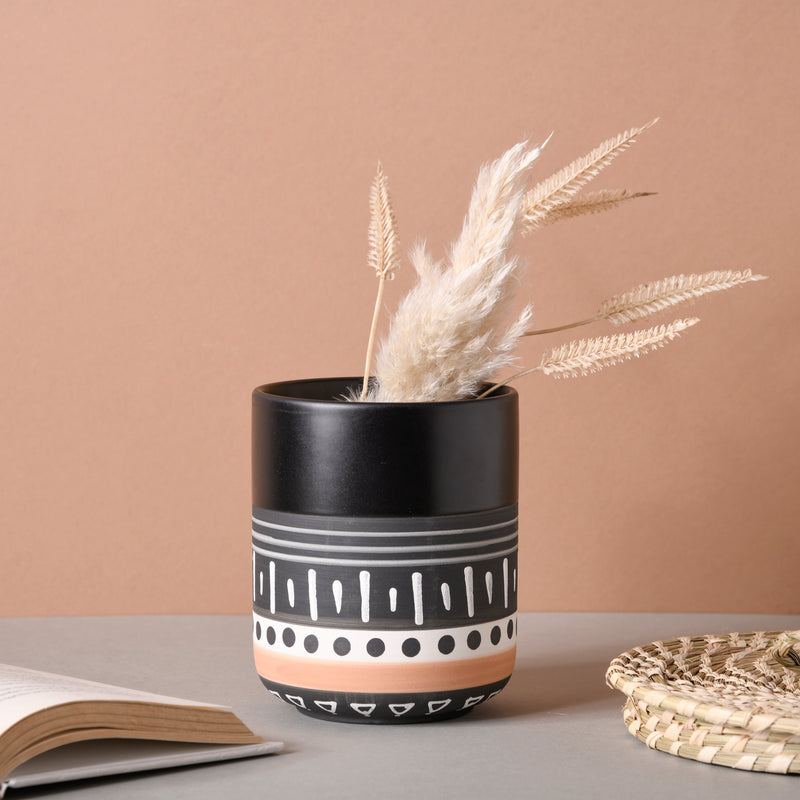 A gorgeous ceramic vase ceramic pot that lends a touch of sophistication to any setting. In coal furnaces, the ceramic ware is heated to a high temperature, patched with fineness. The ceramic vase is stunningly handsome, with a powerful black shade, owing to precise dipping and pouring.