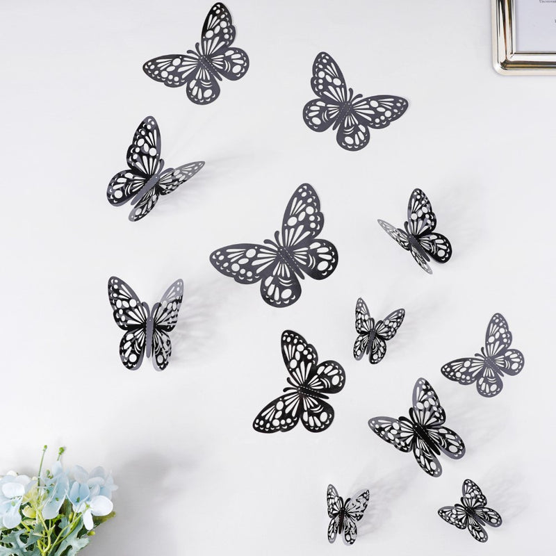 Nestip: The black butterflies can be complemented with silver butterfly stickers to decorate the walls.