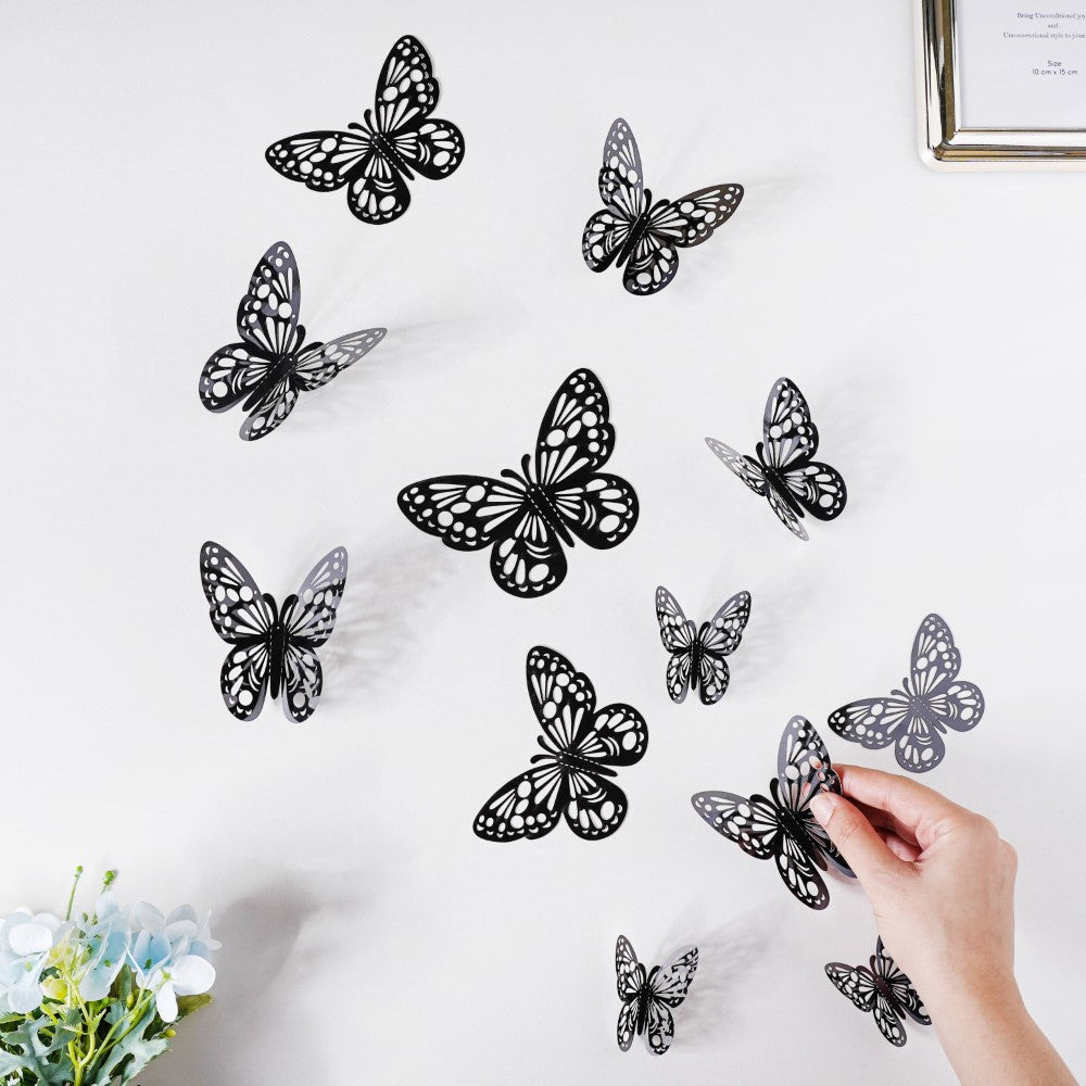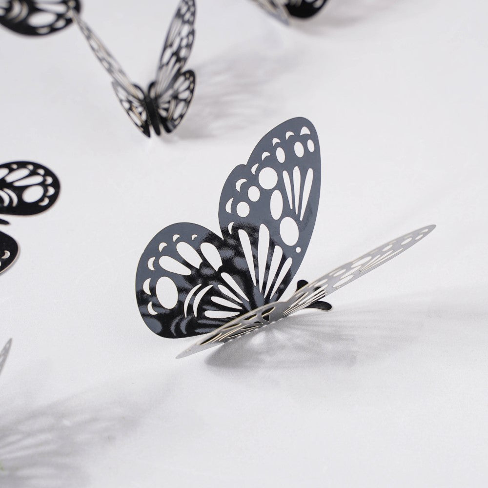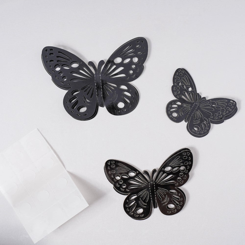 Black Foil Butterfly 3D Wall Stickers Set Of 12