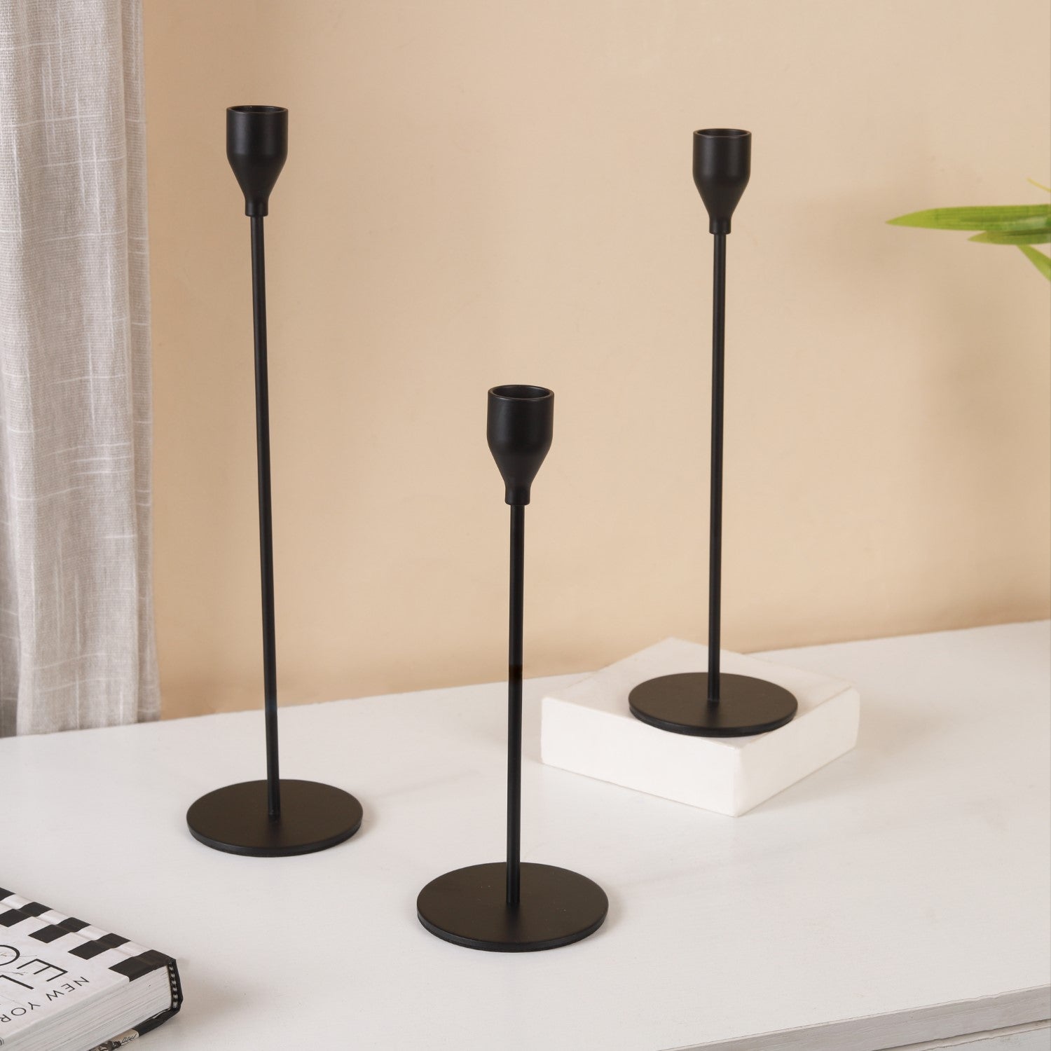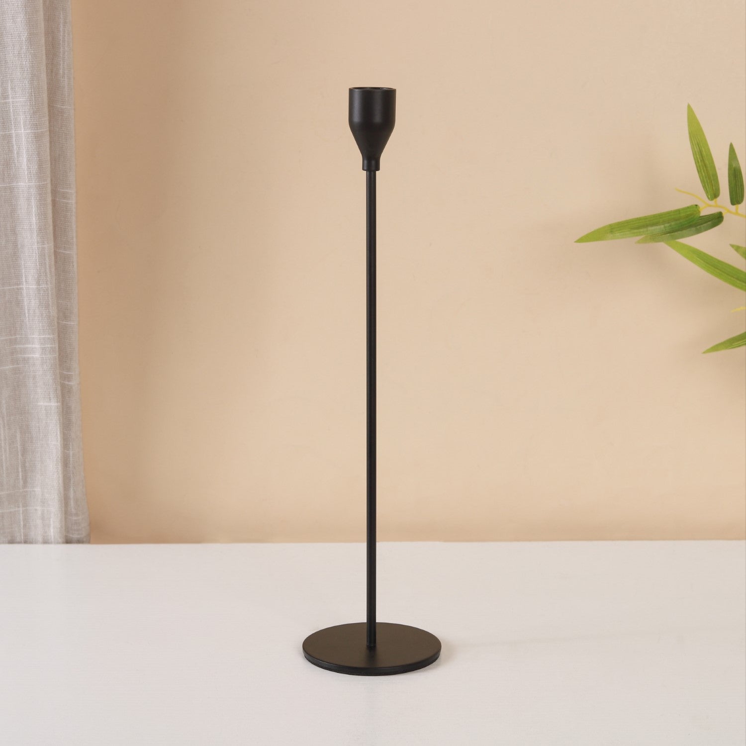 Featuring a clean design, and inspired by modern times, the elegantly styled metallic candle stand is black in color. It is designed to hold taper candles perfectly in place with a good tight fit. Go all fun and festive for a traditional decoration style with the black glossy candle stand. It is completely safe for indoor and outdoor use.