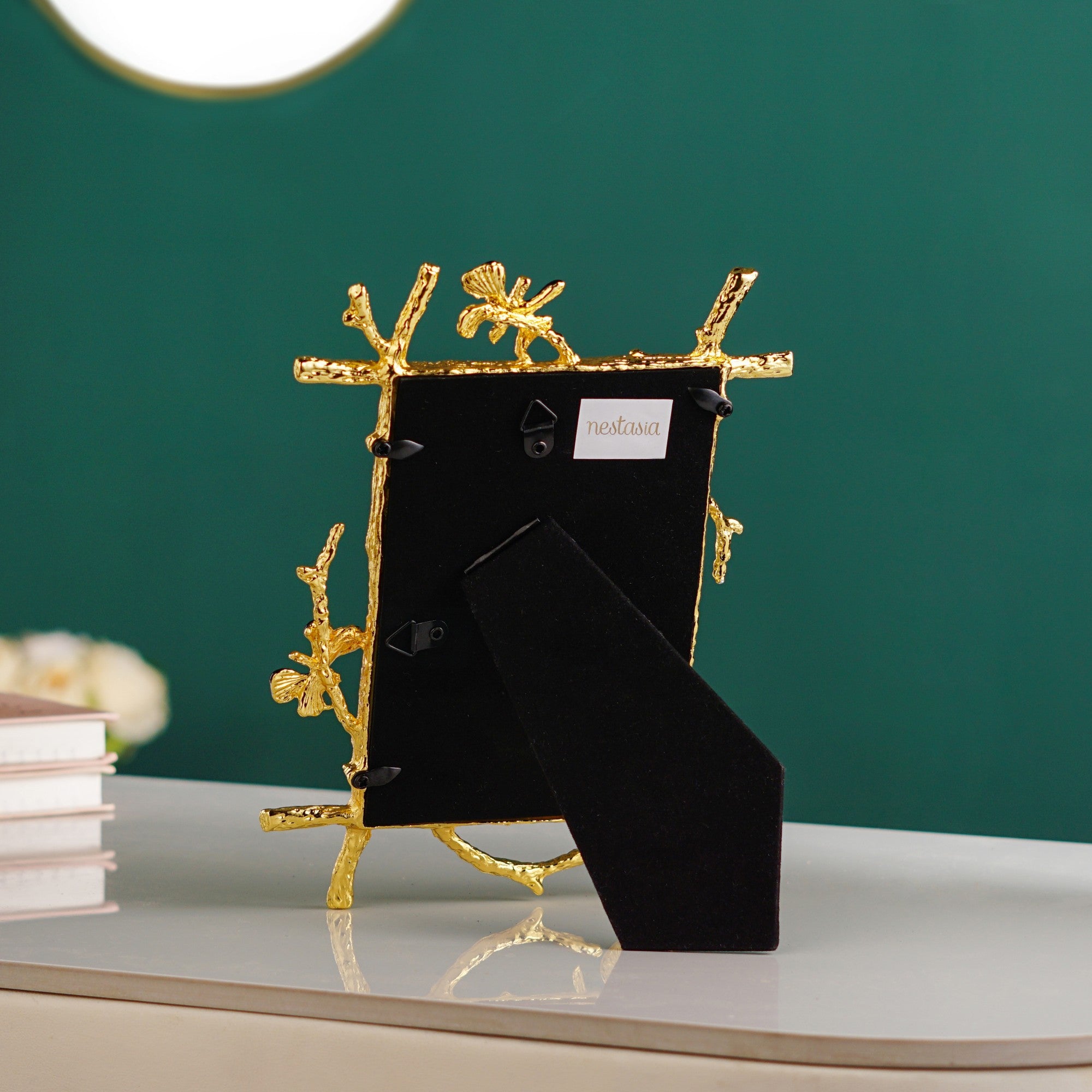 Capture treasured moments in this elegant gold photo frame with a nature-inspired design. It is perfect for displaying 4x6" photos.