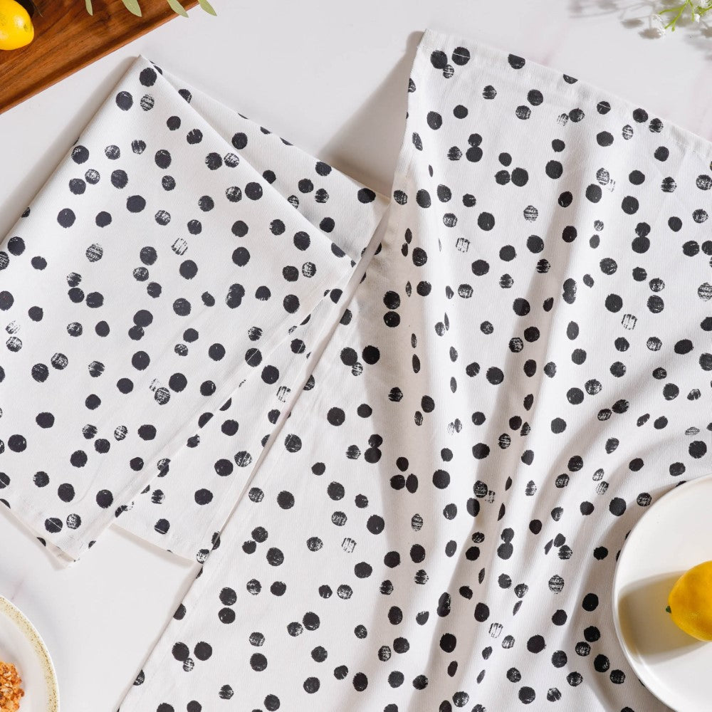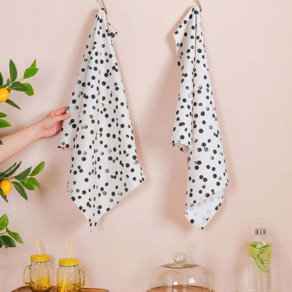 Black Polka Dots Cotton Towel Set Of 2