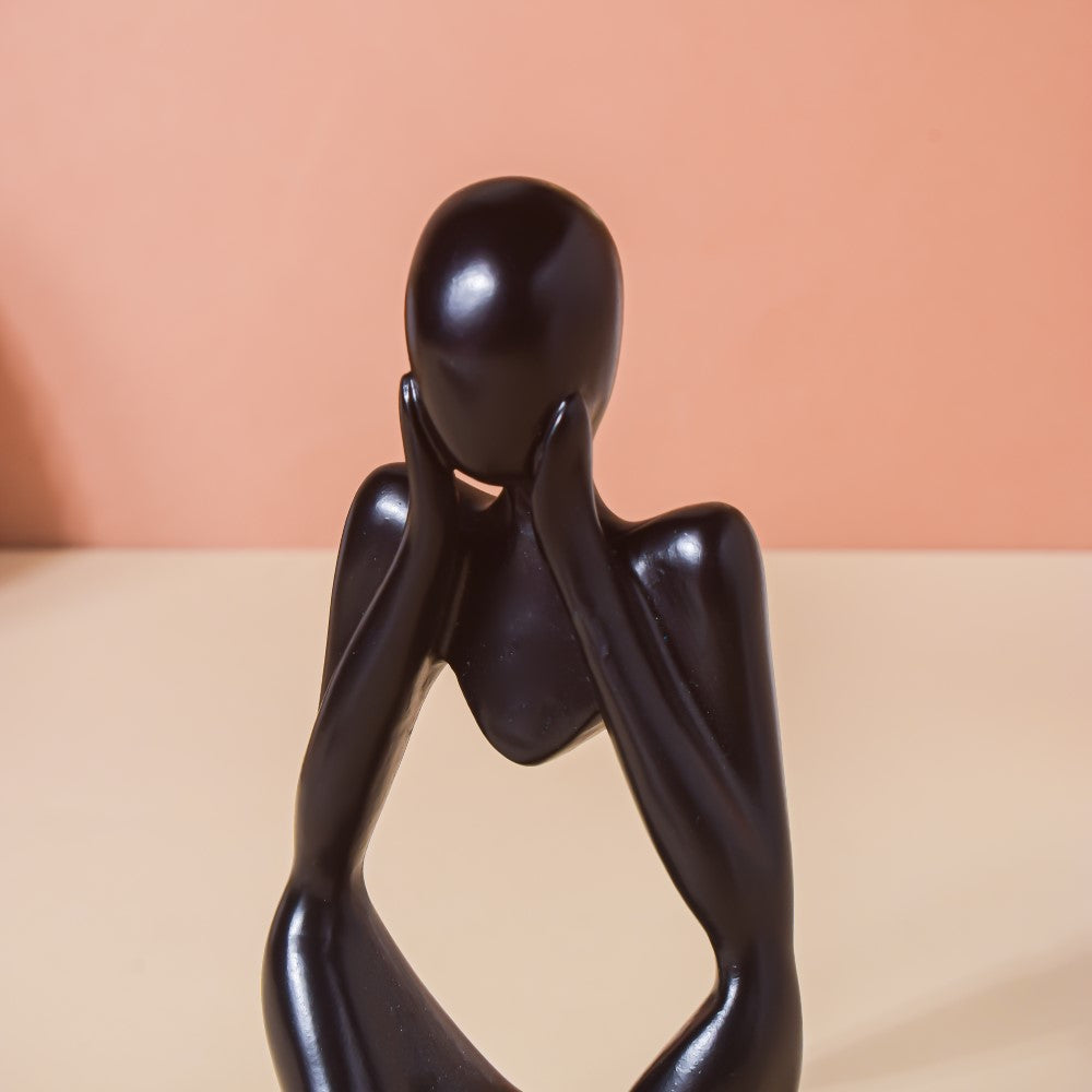 The black resin thoughtful showpiece adds a touch of sophistication and contemplative charm to any home decor setting. Its unique design and black color symbolize depth, introspection, and a sense of mindfulness, making it a perfect addition for those seeking a thought-provoking element in their space.