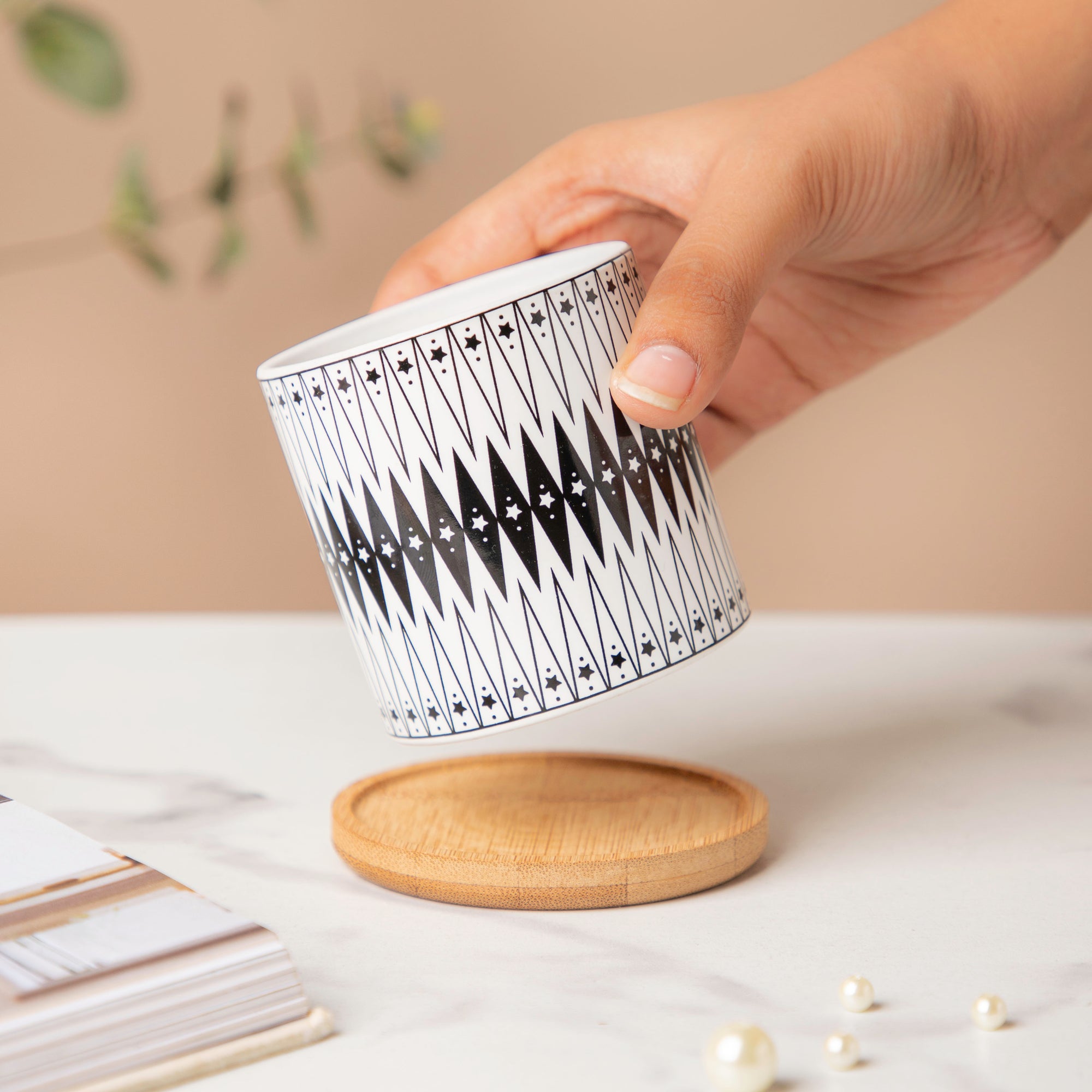 The classic and timeless colour scheme of black and white is what makes the ceramic planter set stand out from ordinary planter pots. The gorgeous handpainted designs of the 8 different indoor planters included in the planter set beautifully complement the black-and-white colour combination. The black-and-white colour scheme of the garden planters can also create a contrasting visual effect with the vibrant colours of fresh flowers and green succulents. The small drainage hole at the bottom of each ceramic planter and the wooden coasters make the planter set highly functional by preventing the risks of overwatering your favourite indoor plants and excess water spillage.