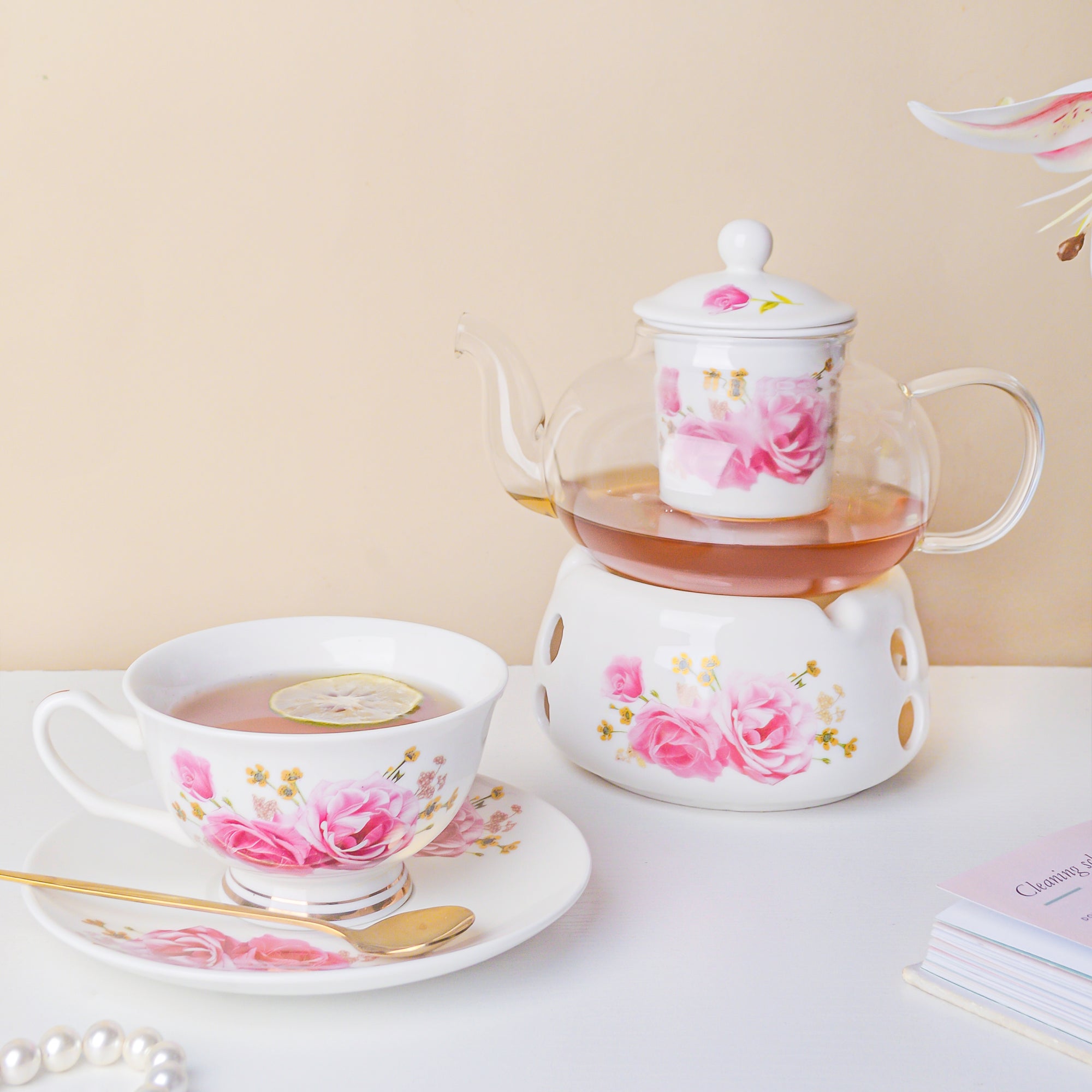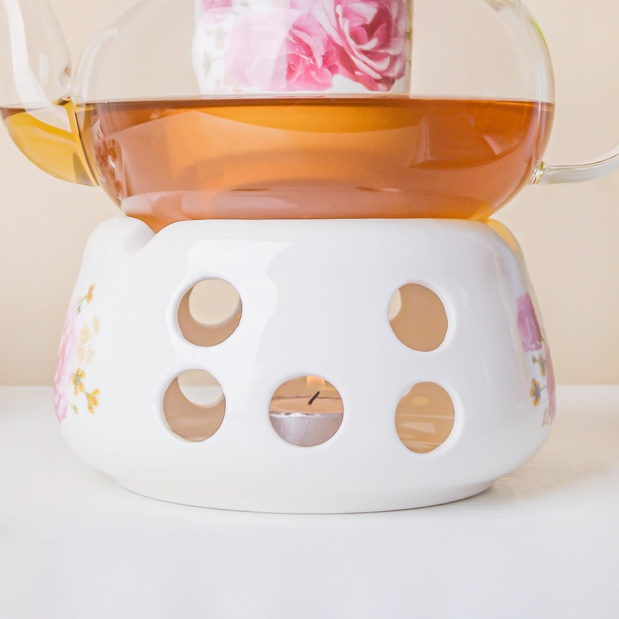 Cherry Rose Glass Teapot With Warmer Base 700 ml