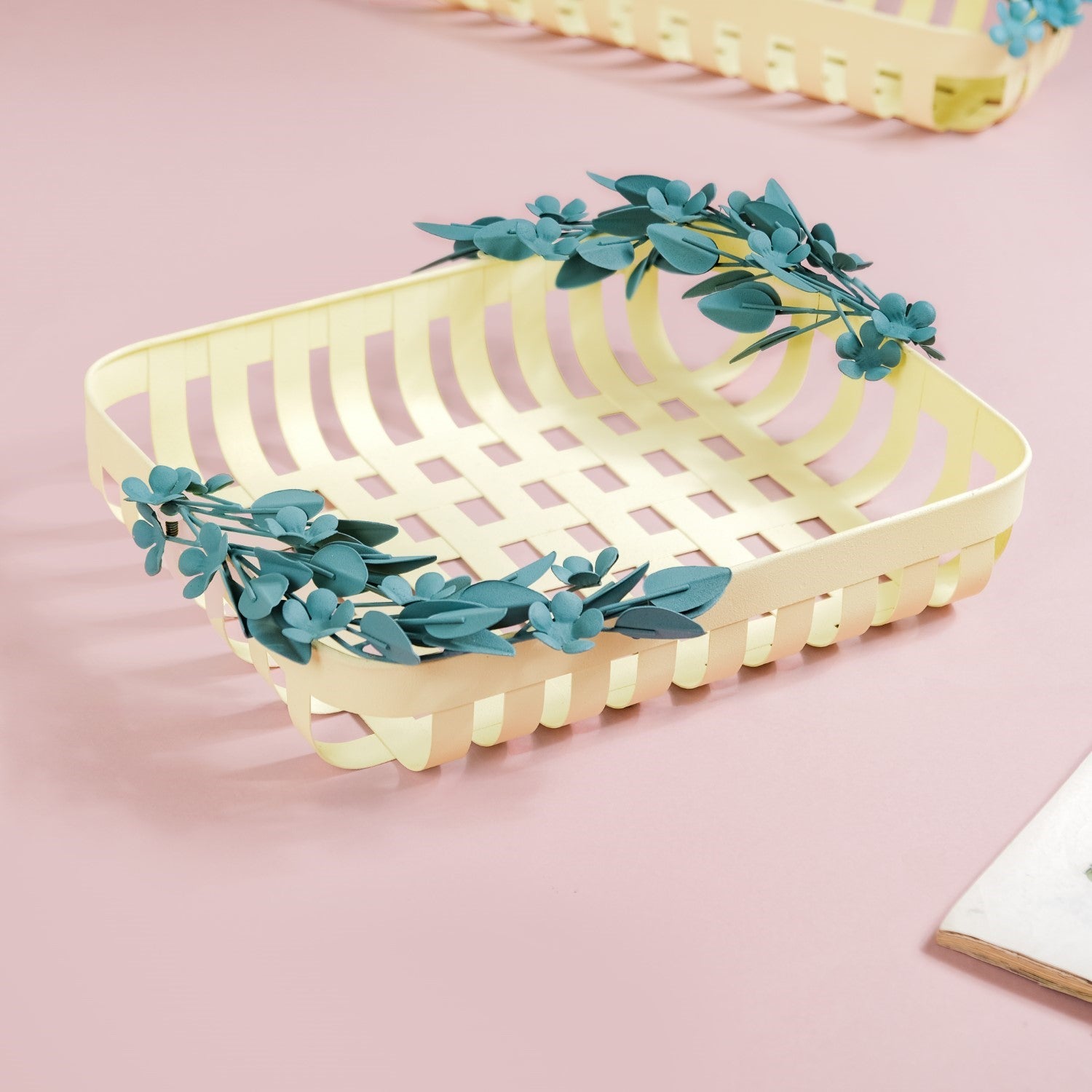 Yes, the metal decorative basket can be used to organize small items such as keys, jewellery, or office supplies. Its multipurpose design makes it a practical storage solution for various household items.