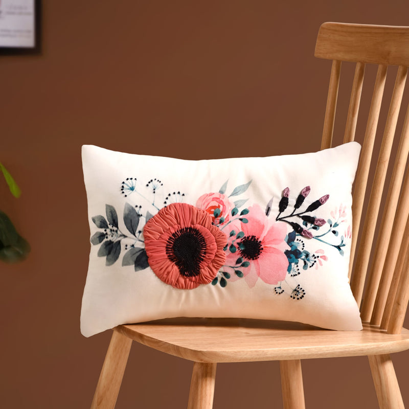 Spotlighting an oversized vibrant flower design in the front for a feminine touch, the bloom cushion cover is sure to spruce up the decor. Made from pure canvas cotton, the square iteration features durable borders and finishing for added appeal. The floral cushion cover is the most natural way of incorporating soothing elements of nature into one's home space.