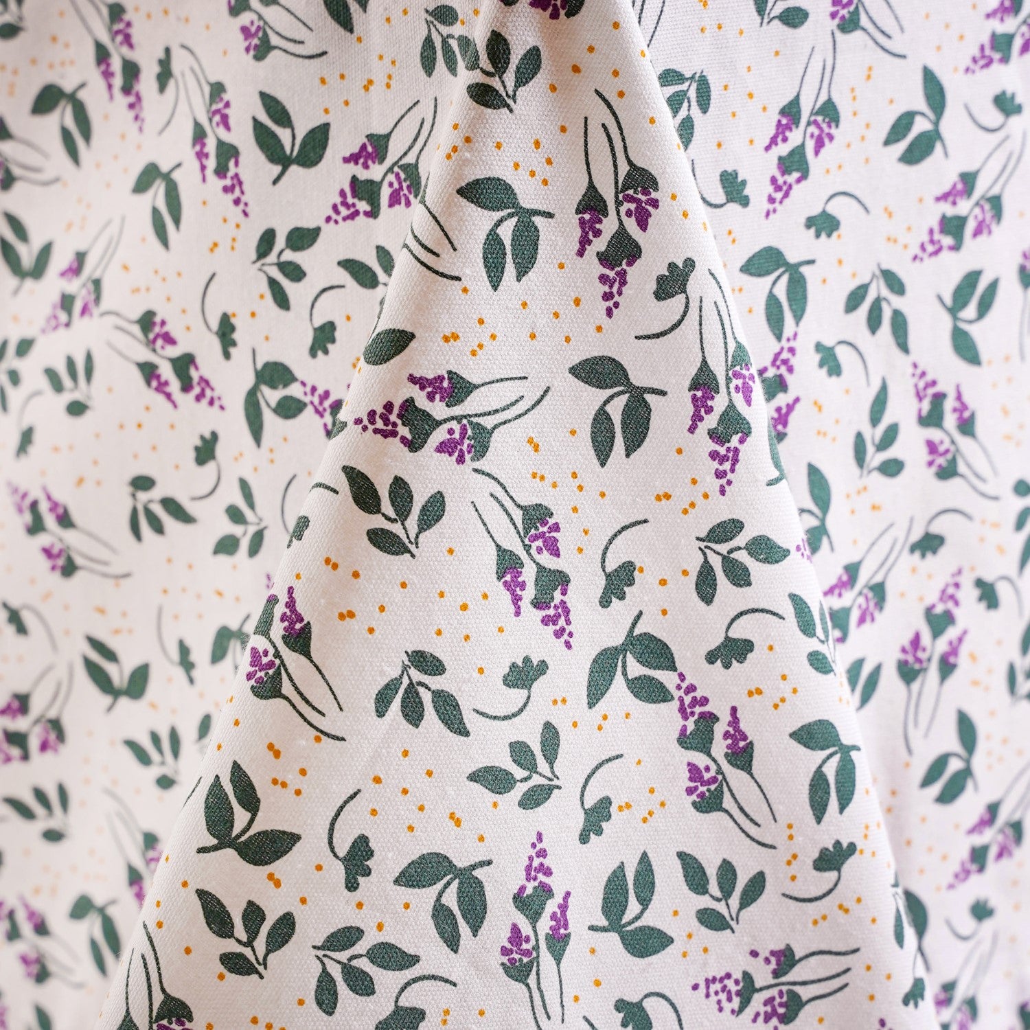 Design: This table cover is like a breath of fresh air for your dining space! The crisp white base is sprinkled with vibrant lavender flowers and delicate botanical details, making it a stunning backdrop for your favourite tableware. The premium fabric drapes beautifully, instantly elevating your setup while keeping things effortlessly chic.