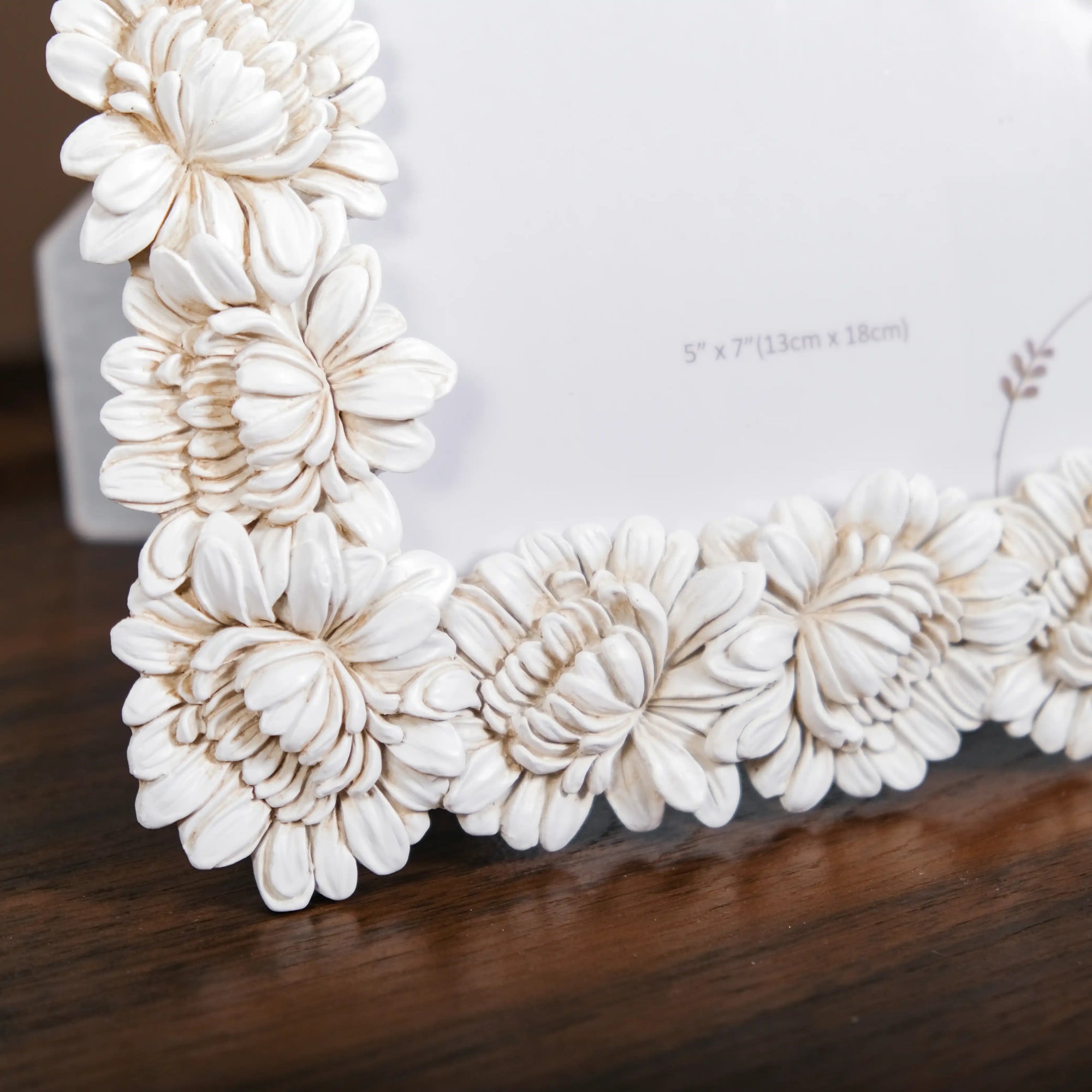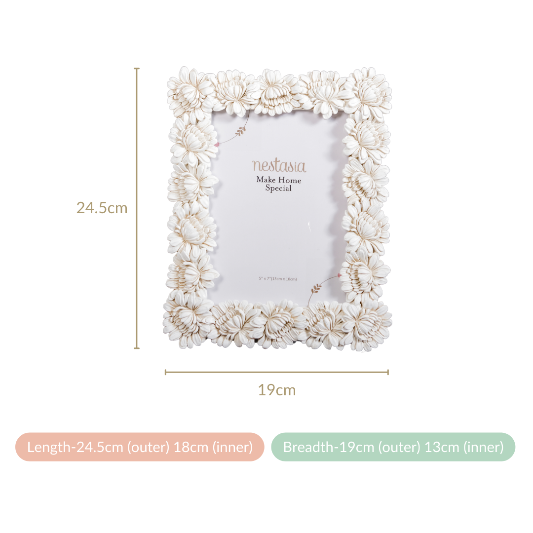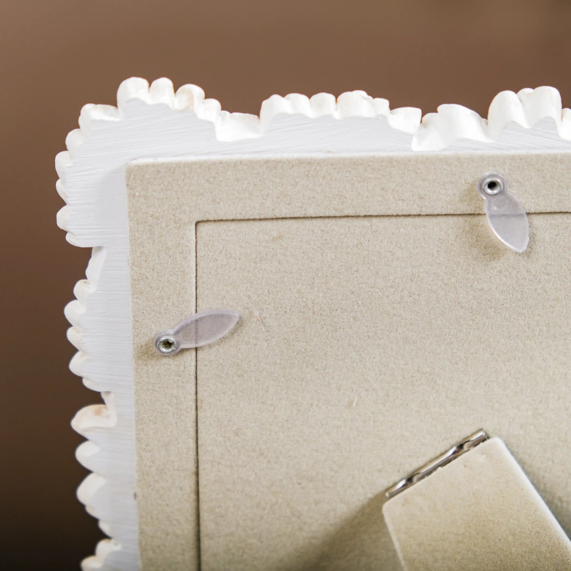 Elevate your cherished memories to captivating masterpieces with our large rectangle photo frame. The serene white resin border is adorned with intricately detailed flowers. Meticulously crafted, this photo frame seamlessly fuses artistry and functionality, preserving treasured moments with style. The timeless appeal of white flowers brings tranquillity to your living space, an exquisite addition to any room's decor. Display it on walls or mantelpieces, and let the enchanting beauty of the floral-bordered frame breathe life into your beloved memories.