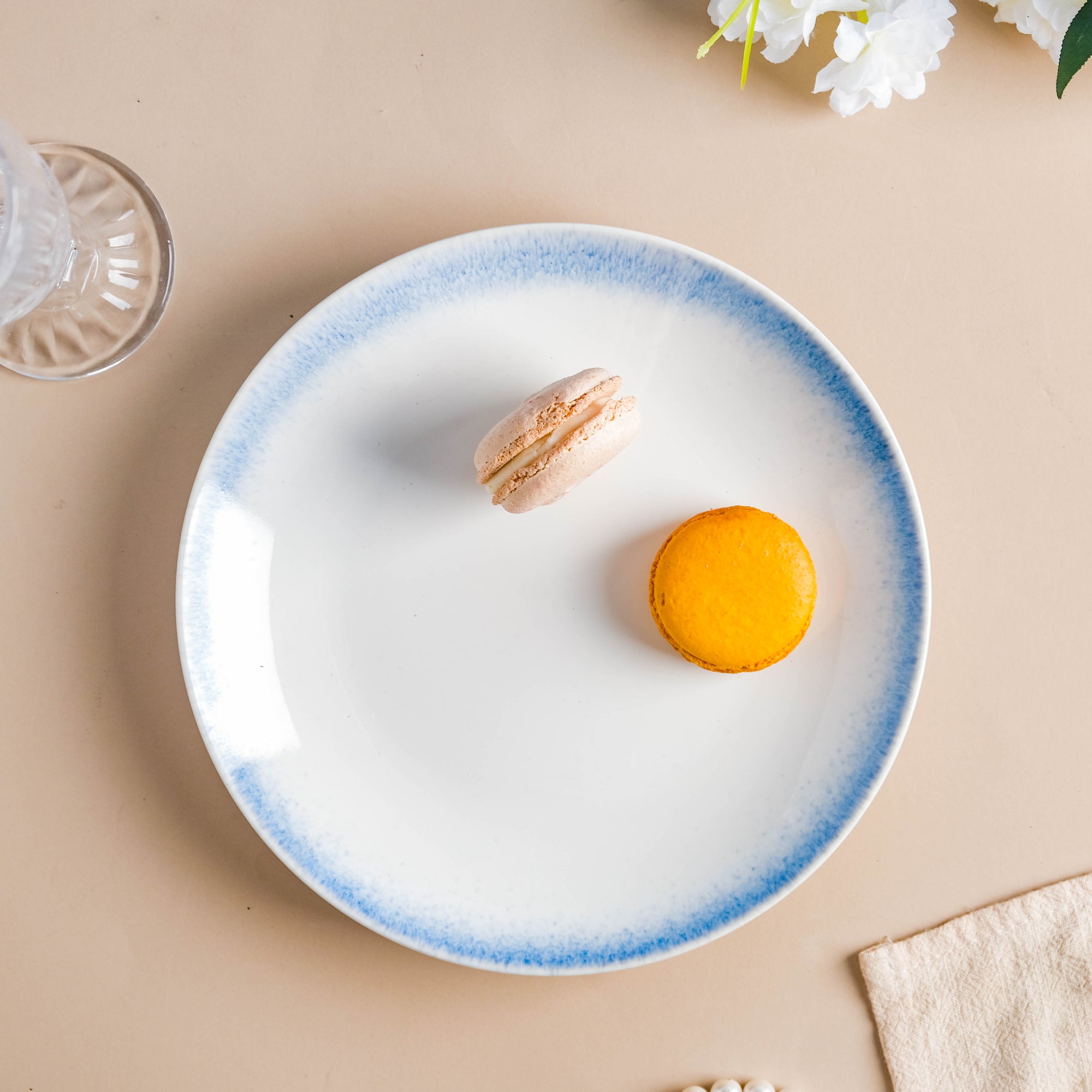 Boasting a fusion of two contrasting tones- light blue and pearl white, the ceramic round snack plate appears cheerful and classy. The plate can be used to serve appetizers, salads, or the main course in style to guests and family members. The ceramic construction of the plate makes it non-porous preventing the retention of strong scents as one eats from the dish. It also makes cleaning the dish super easy.