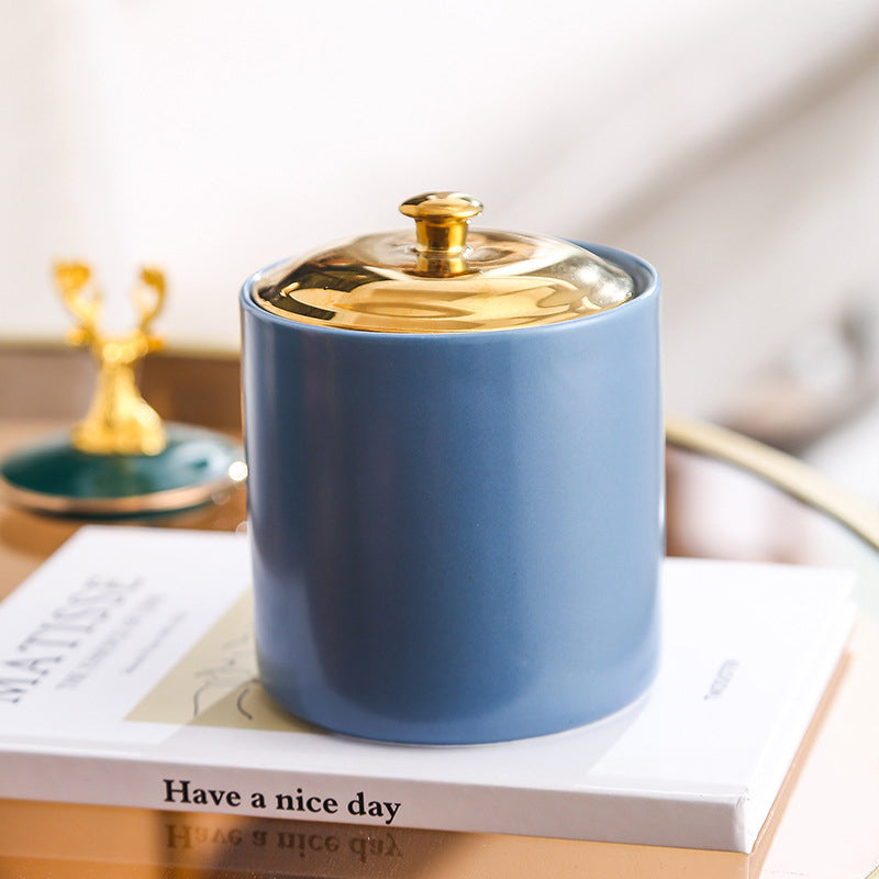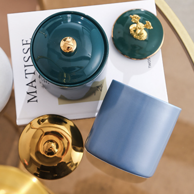 The colorful ceramic container with a gold lid looks graceful sitting on a kitchen countertop or dining table. Combine the stylish containers of variant shades to store an assortment of spices, lentils, or beans and deck up the kitchen shelves. Available in four variant different shades, these ceramic jars with lids are crafted with minimal design to stand out in a contemporary space.
