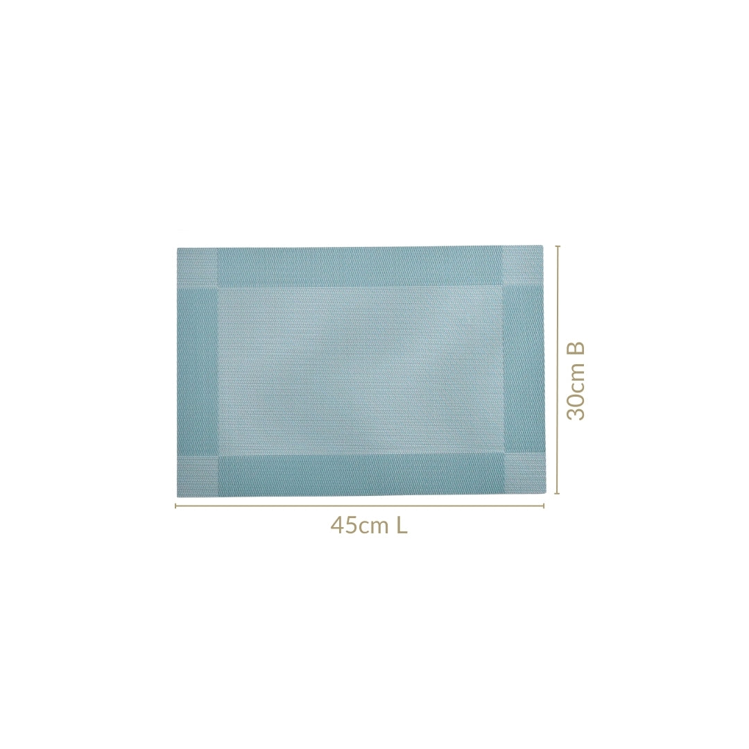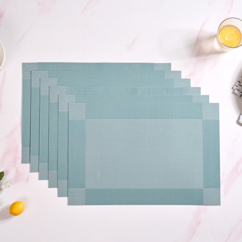 Design: This set of 6 blue reversible dining table mats is made of sturdy PVC and designed for everyday ease and elegance. Each rectangular placemat comes with two stylish shades on either side, letting you switch up your table setting in seconds. The mats feature a textured surface that keeps them from slipping and provides a clean, finished edge. The soft blue tones lend a calming vibe to any table, whether for breakfast, brunch, or dinner. Lightweight, flexible, and fuss-free, these table mats are a practical addition to any modern home.
