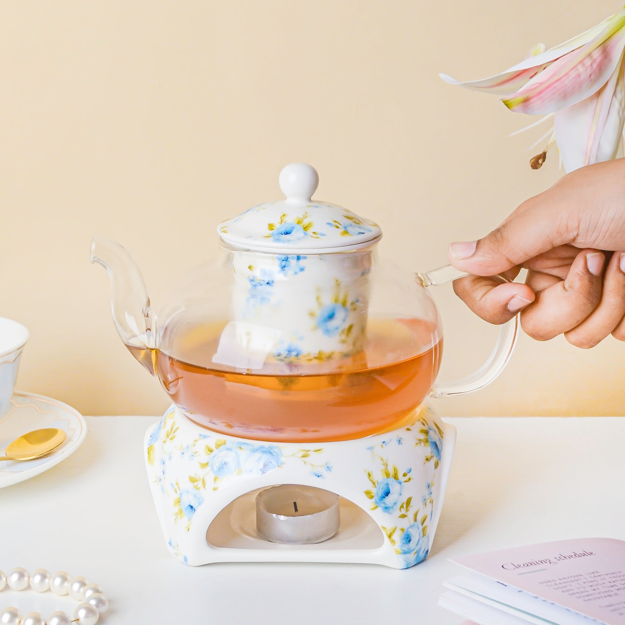 Nestip: The transparent and ceramic teapot and warmer set can be an ideal birthday gift.