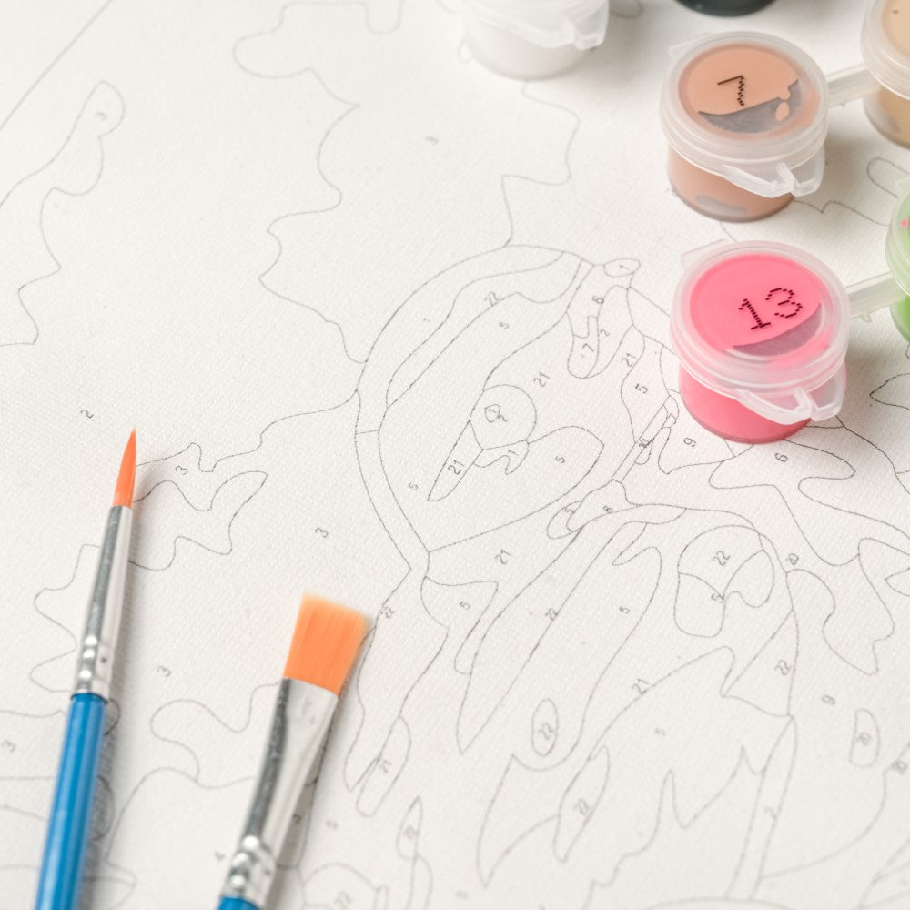 Attributes: - DIY fun - Therapeutic & destressing - Prior training not required - Ideal for both kids & adults - Family activity - Image on canvas same as reference image - Fill colour of the number corresponding to the number on the paint