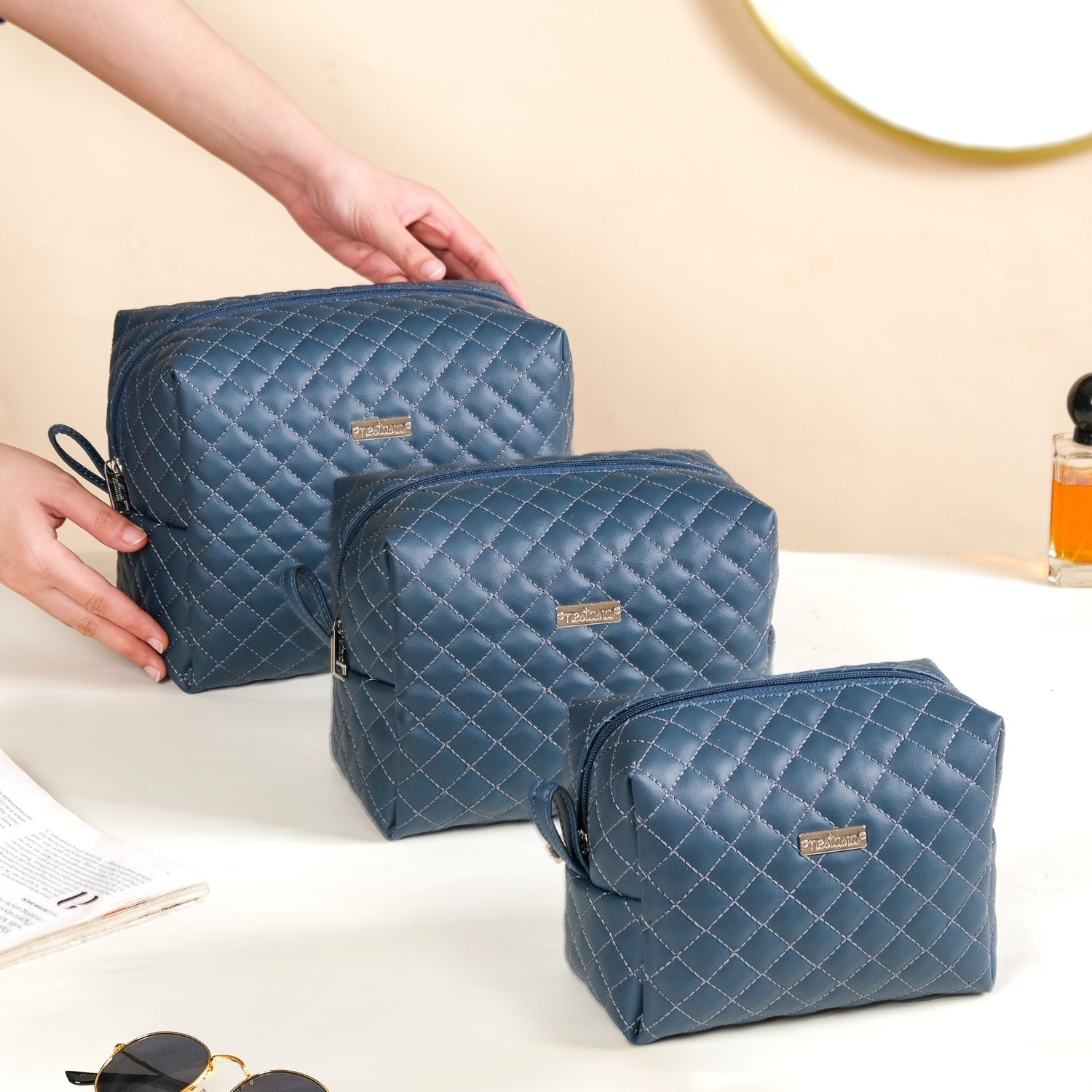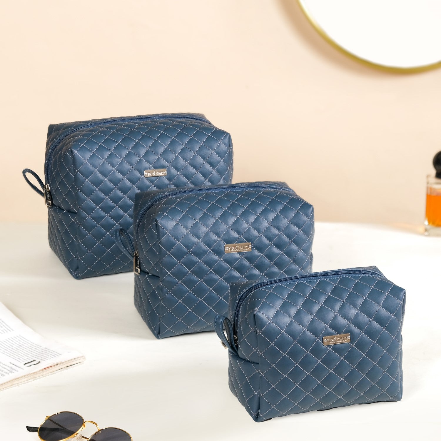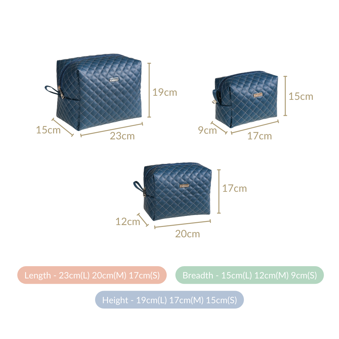 While designed with makeup and toiletries in mind, these versatile pouches can accommodate various items. Use them to organise electronics, stationery, or personal accessories like jewellery and sunglasses. Their nesting design allows for efficient storage, making them perfect for any belongings you need to keep organised while travelling or at home.