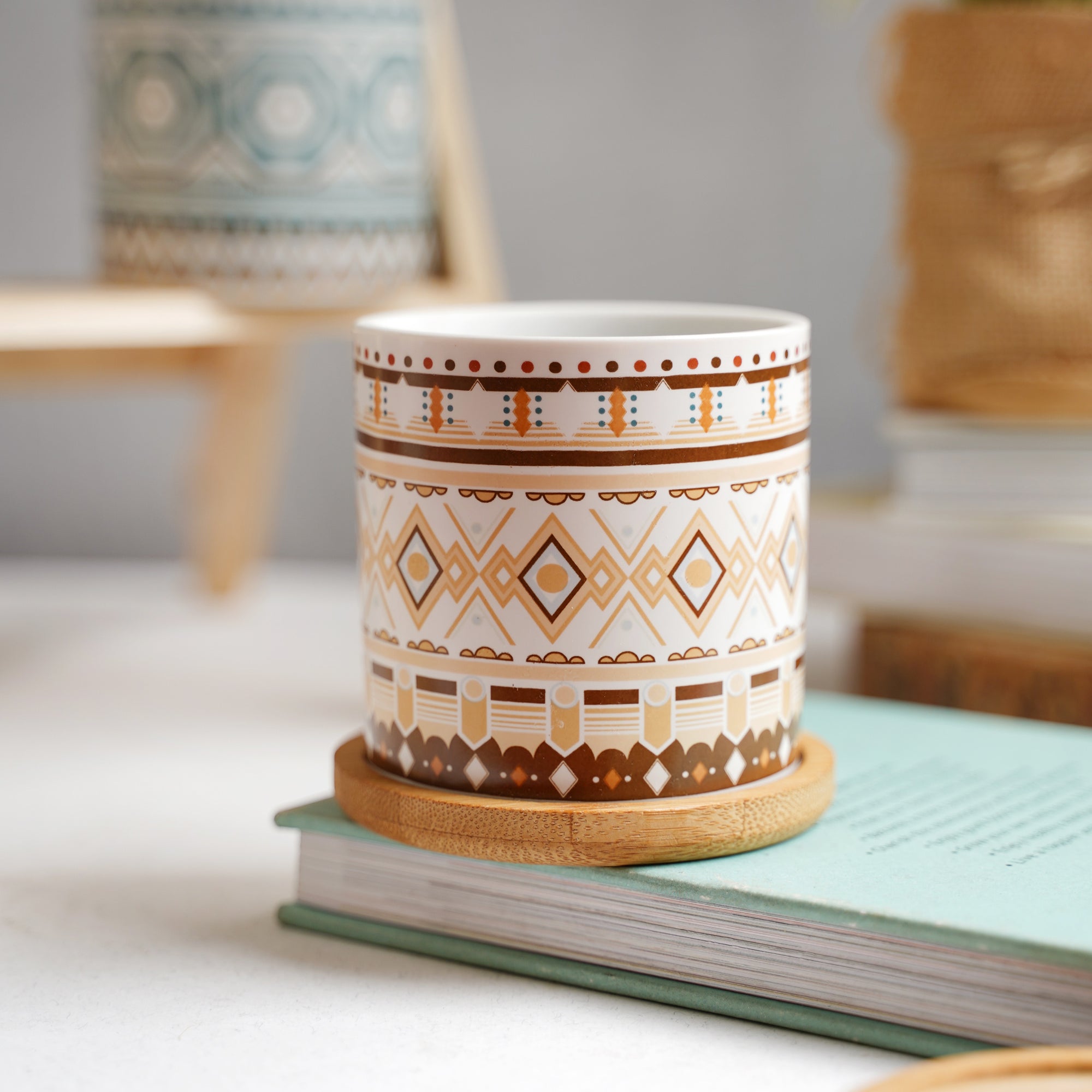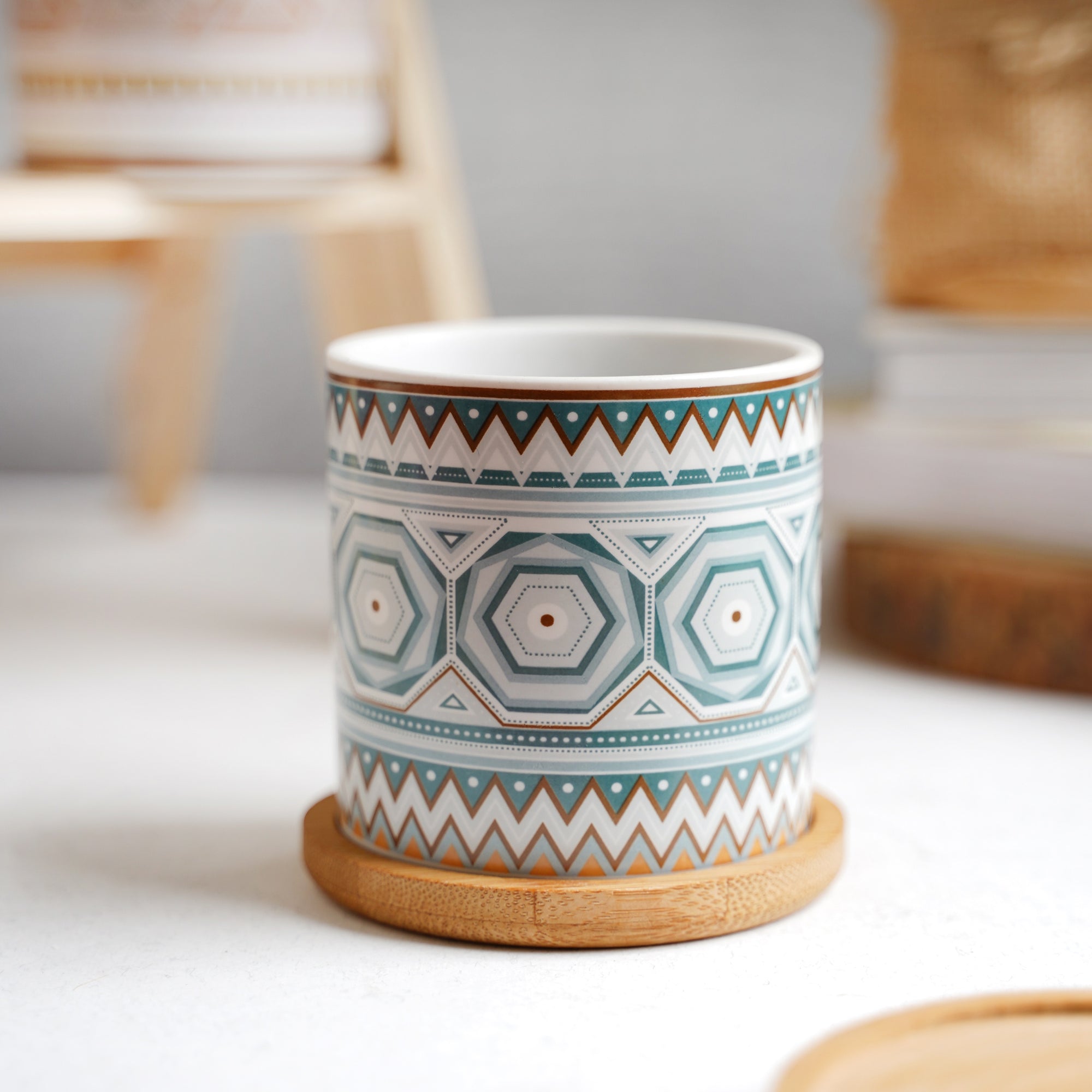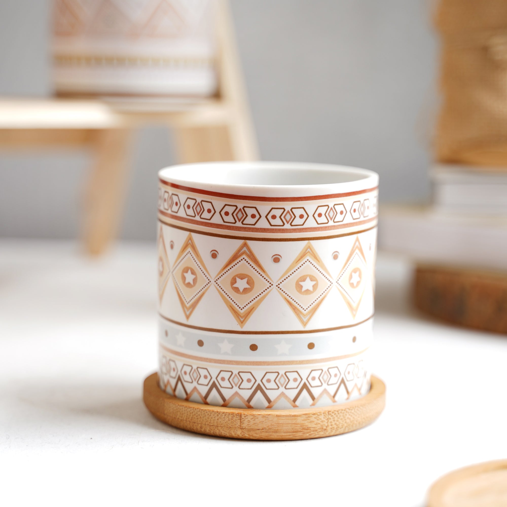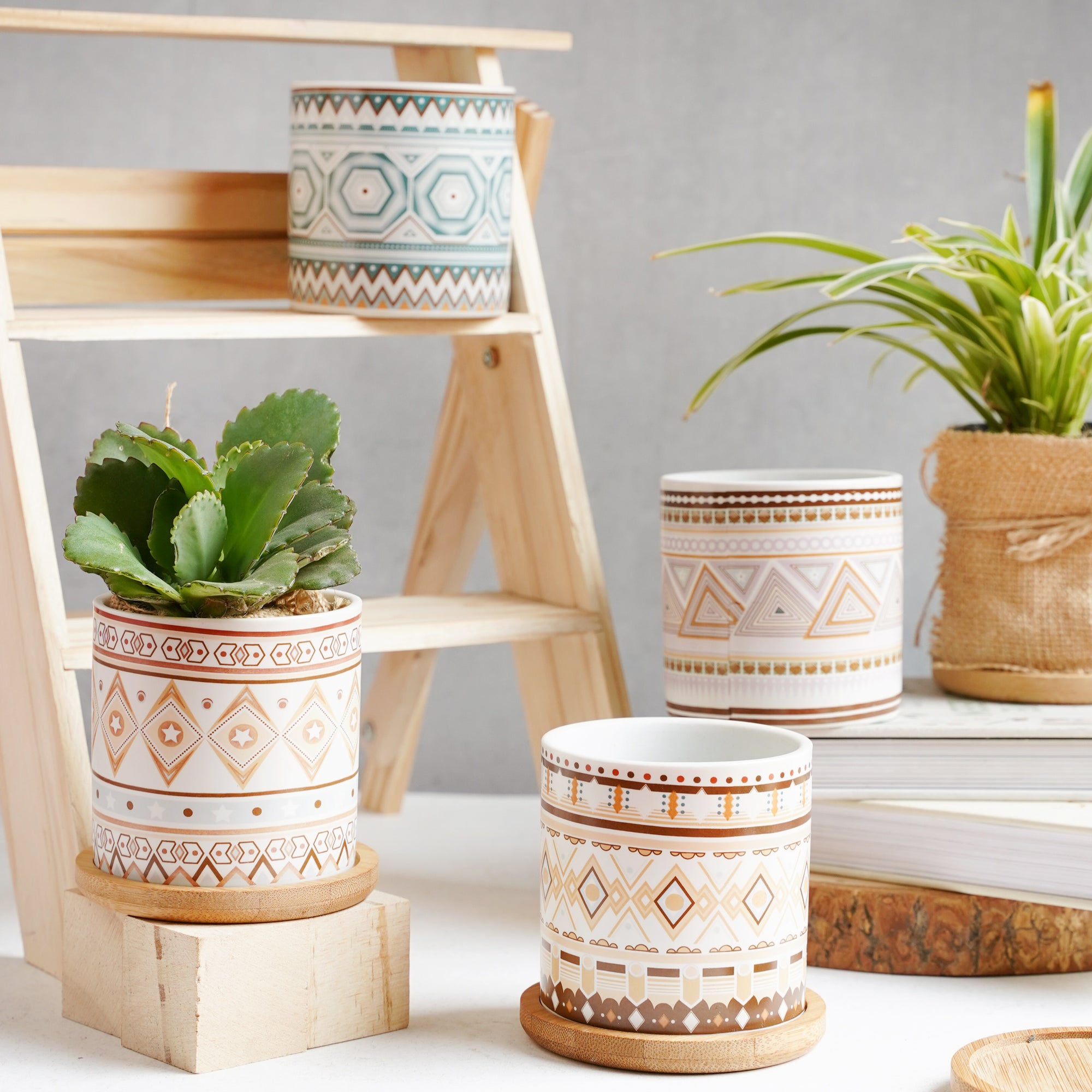 Bohemian planters that come in tribal prints with unique combinations of colours. The eye catching prints give the planters a modern look, making them stand out. They are apt for being paired with greens or colourful blooms, and can also be used as decor pieces to jazz up any solid colour toned corners of a living space with their hues. Plants do not come along with the planters.