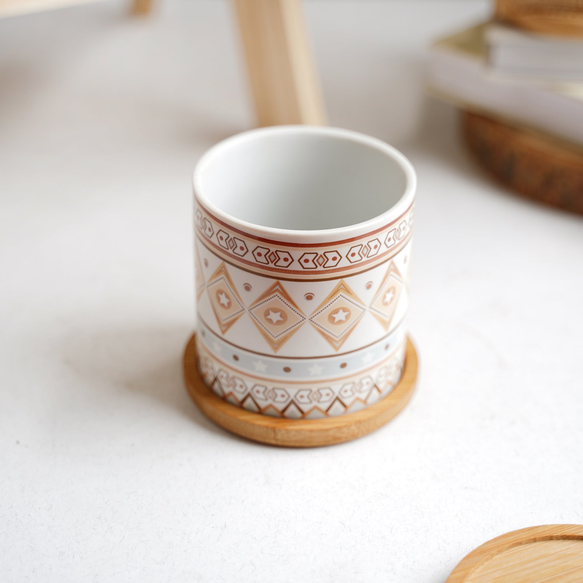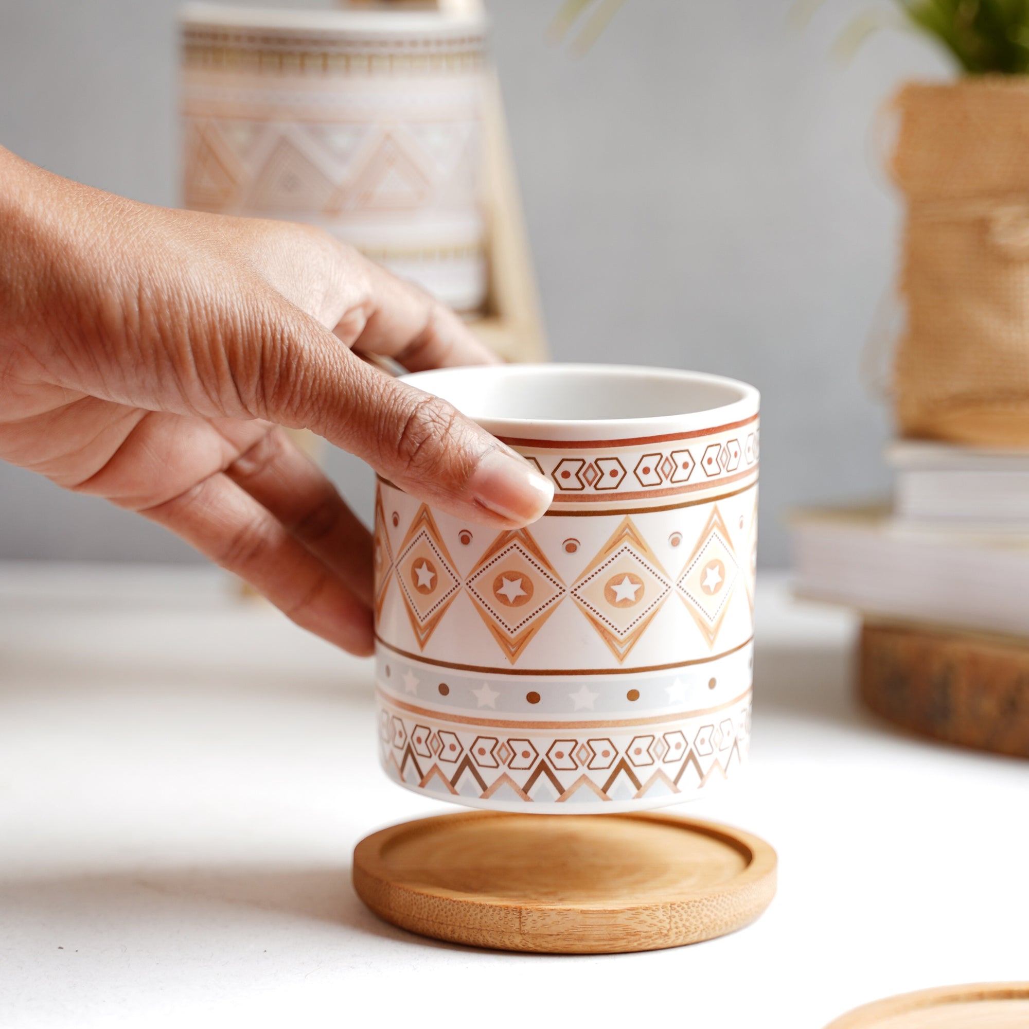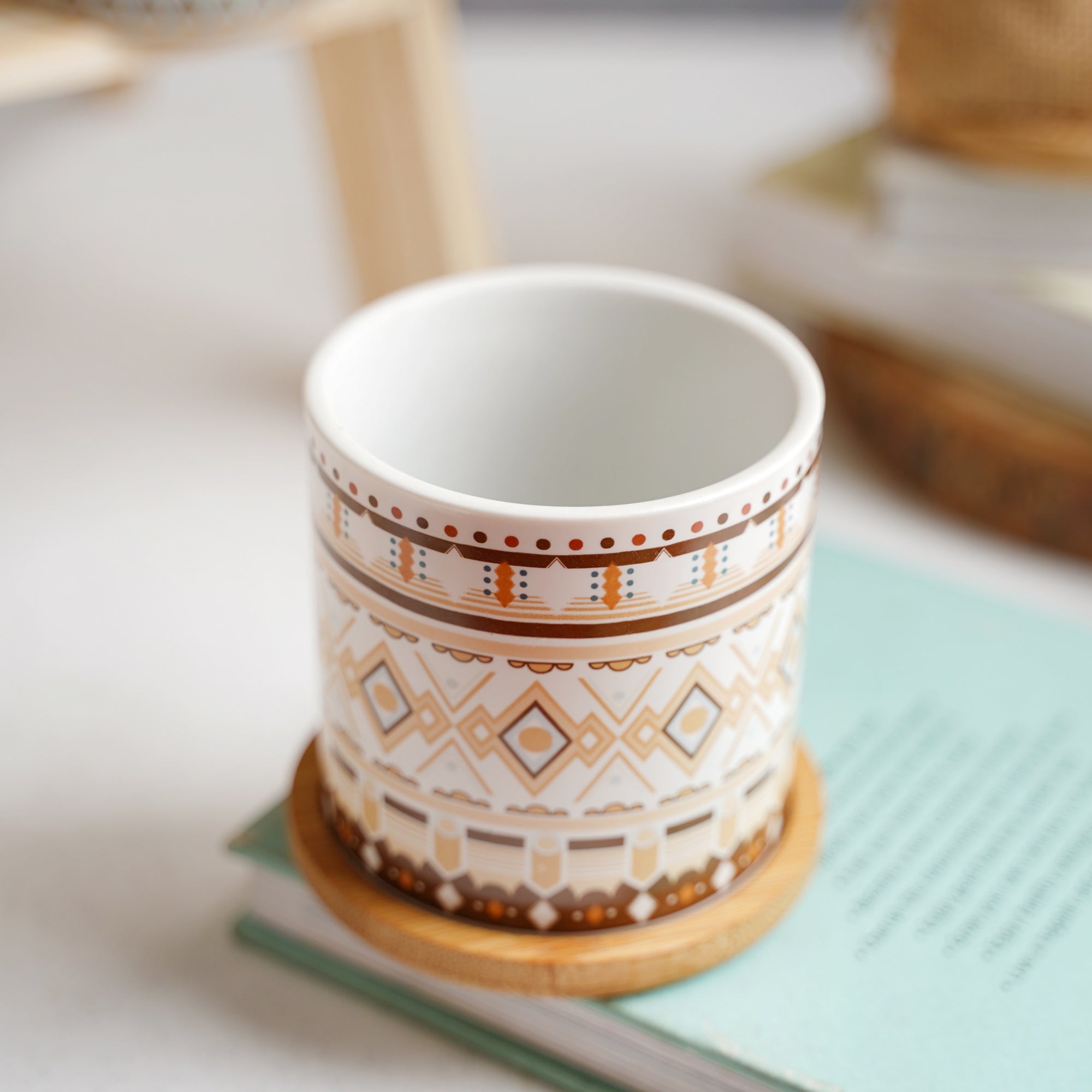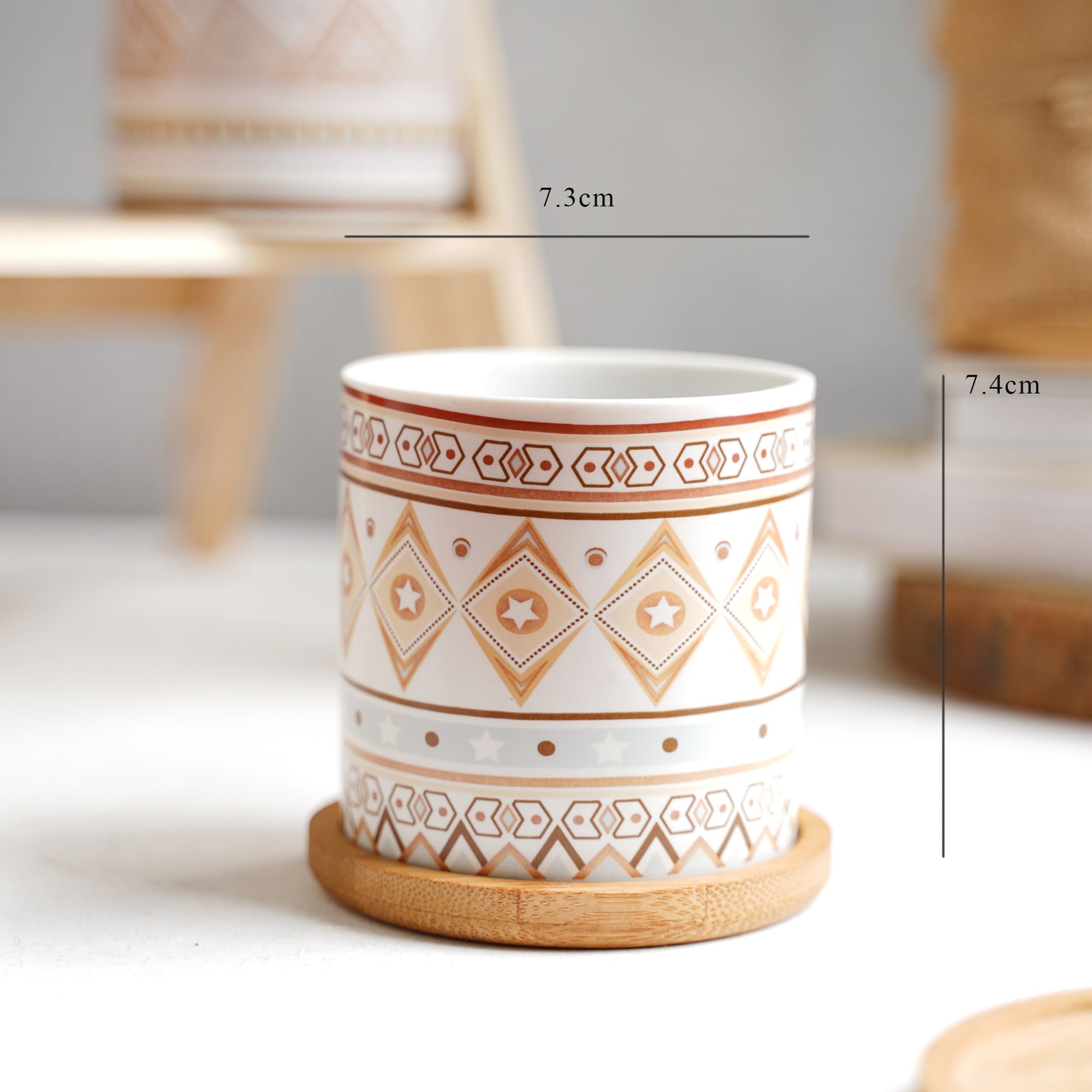 Bohemian planters that come in tribal prints with unique combinations of colours. The eye catching prints give the planters a modern look, making them stand out. They are apt for being paired with greens or colourful blooms, and can also be used as decor pieces to jazz up any solid colour toned corners of a living space with their hues. Plants do not come along with the planters.