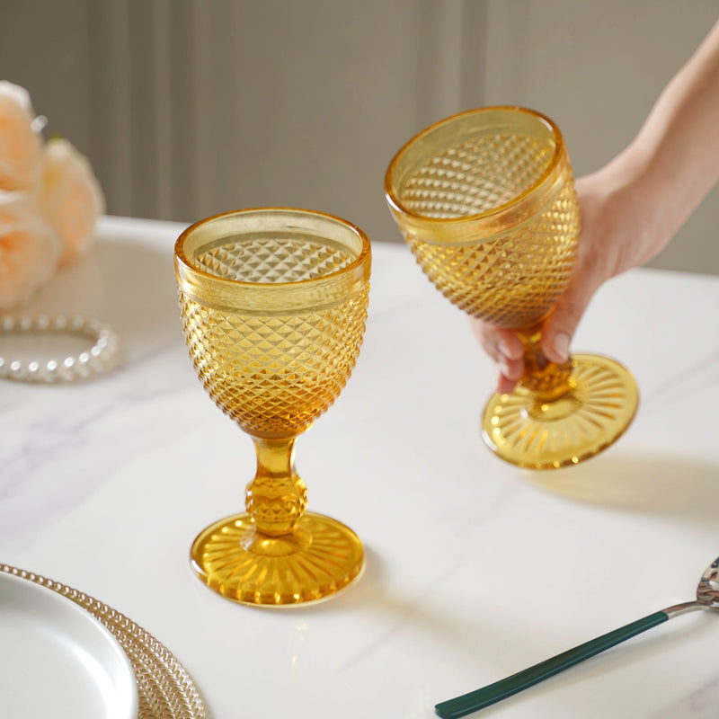 The range of textured drinkware is a true expression of luxury and refinement. The exquisite design of the drinking glasses in an alluring hue makes for a great choice of barware to be paired with all colors of crockery and simple water drinking tumblers. Give a set of glasses to friends and family on a housewarming and be ready to win compliments from them. The glasses with a textured outer surface are easy to place, pass, and hold. A dinner table layout using glass vases and drinkware with ceramic crockery would truly make a worthy decor. Add simple elegance and style to any occasion with the set of glass drinkware.