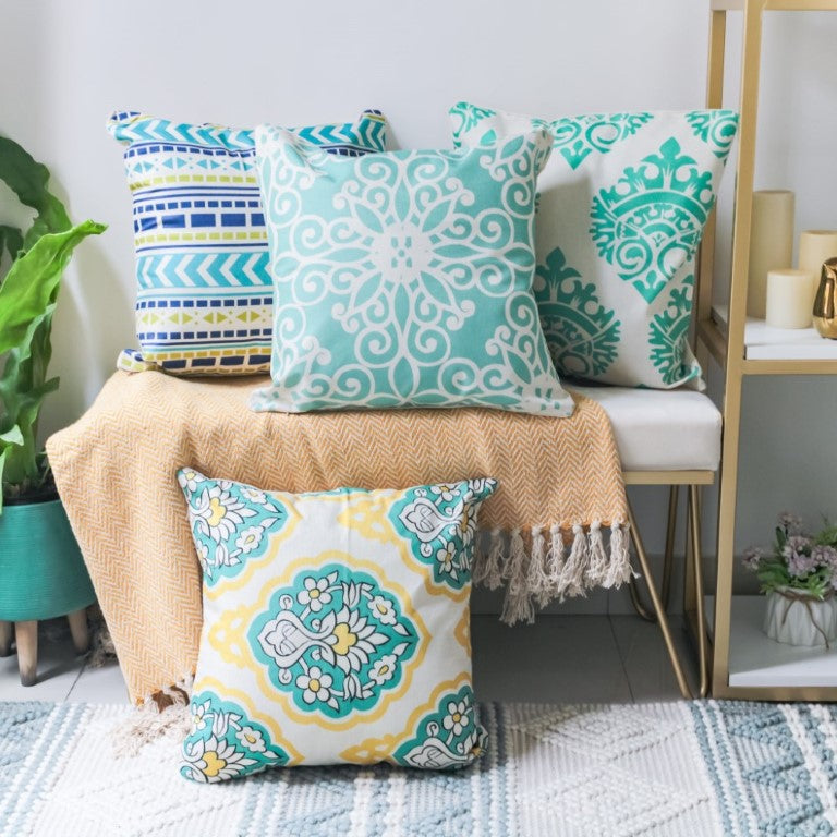 Boho cushion cover to liven up any corner of the house. Available in 4 compelling designs in a predominant mixture of foam green, yellow, white and black hues. The cushion cover is made of excellent quality material, and is durable with a soft texture. The square cushion cover can be used to add a hint of color and excitement to the living room or bedroom to liven up the decor settings.