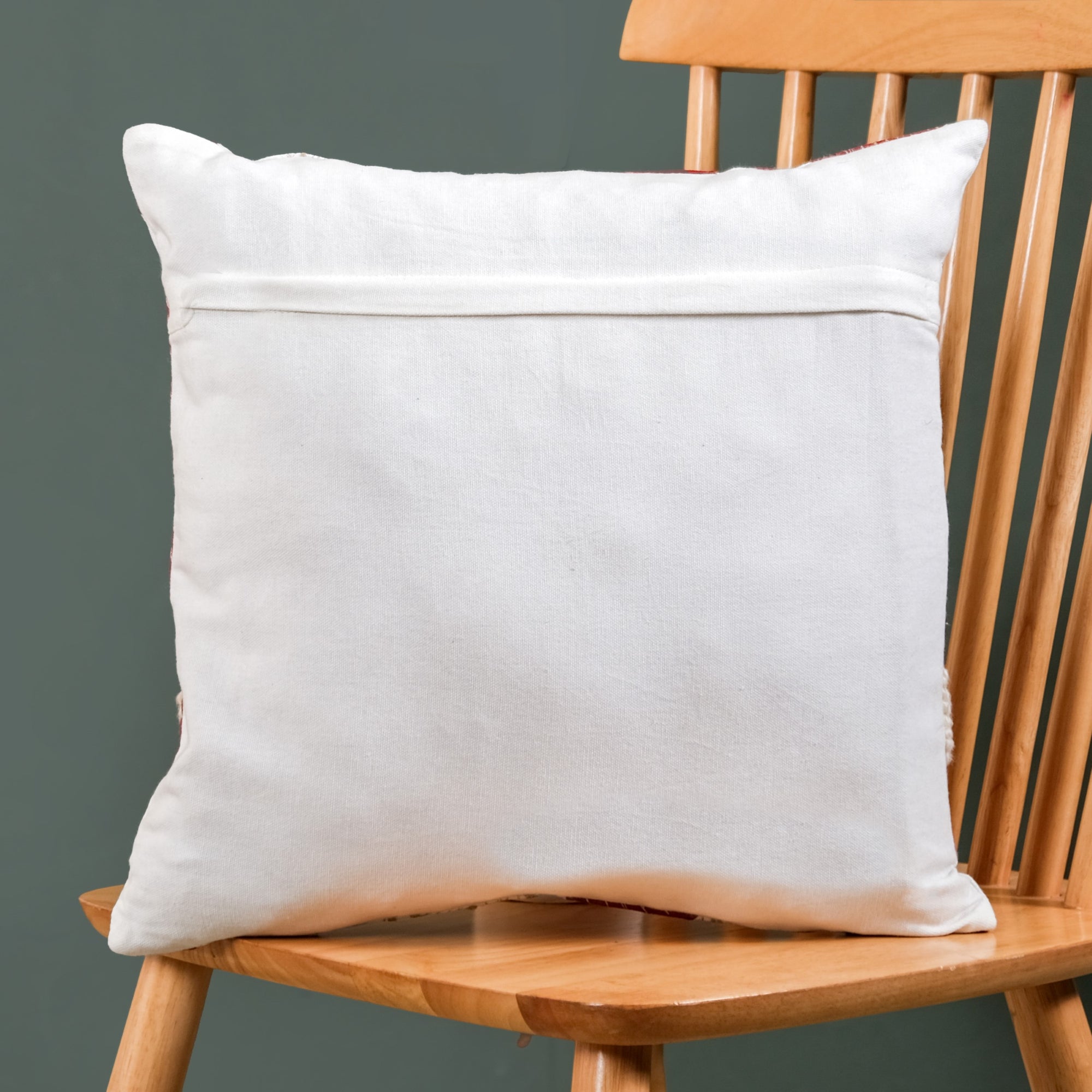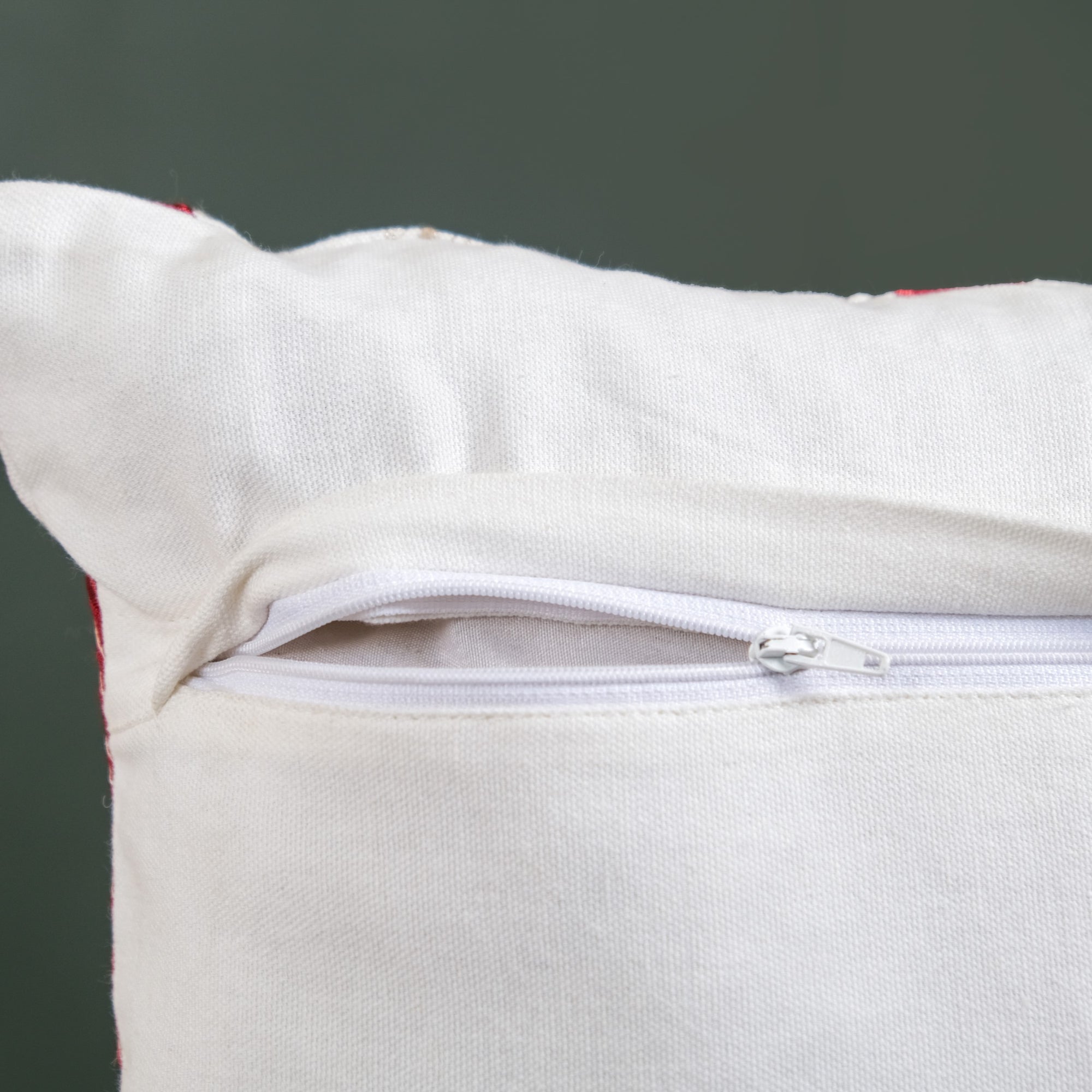 Design: The couch cushion cover showcases intricate machine-made embroidery that adds depth and texture to its look. Adorned with stitched maroon applique floral patterns, it creates a subtle yet striking visual appeal. The smooth concealed back zipper ensures the cushion remains securely in place while maintaining a seamless finish.