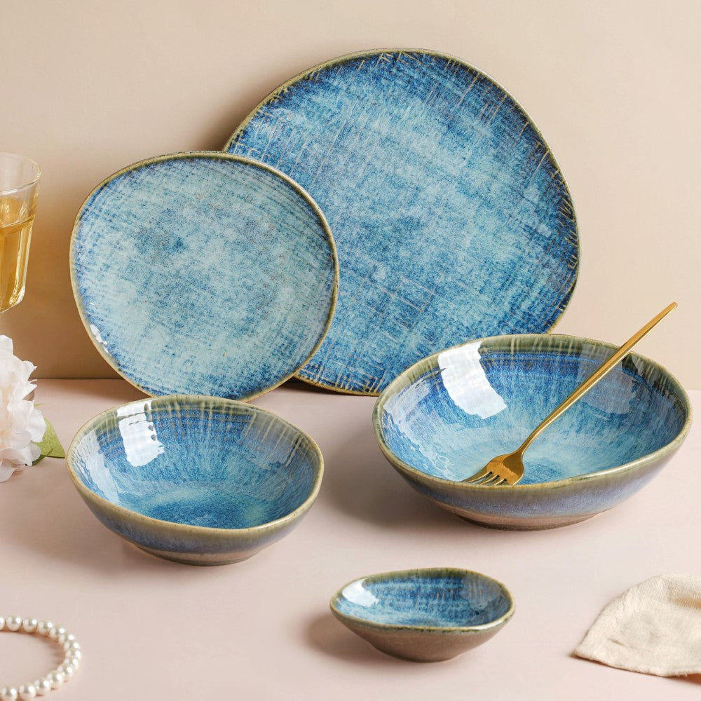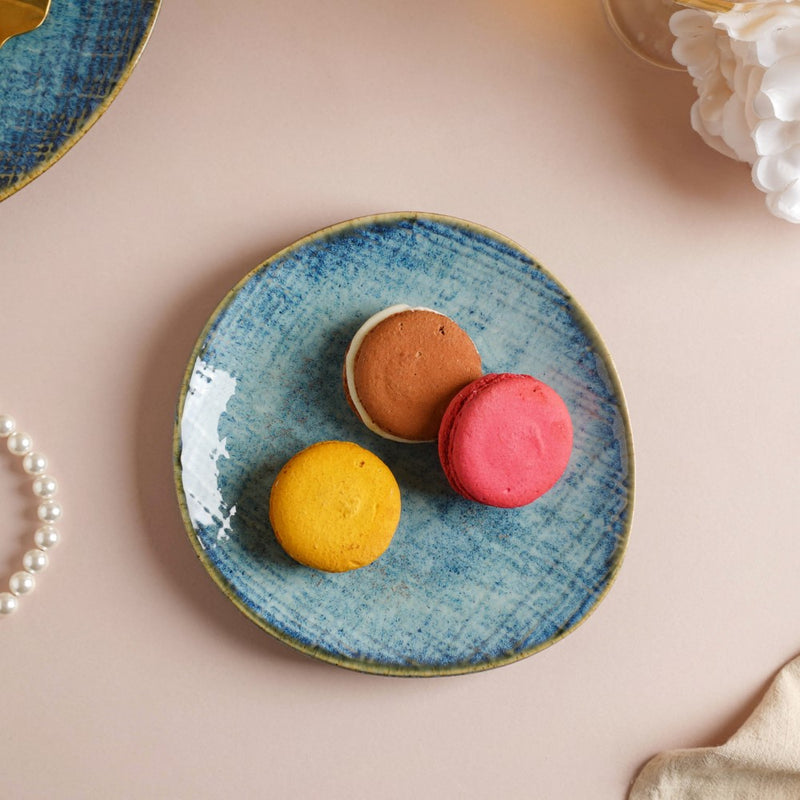 The stoneware blue appetizer plate a spectacular choice for an elegant dinner set-up. This minimal yet modern design will uplift the basic tablescape. Serve an array of Asian and Oriental cuisines in the stoneware crockery. One can even use the ceramic plate as a wall plate. Nestip: The ceramic snack plate can be used for serving munchies and biscuits to the guests at a high tea dinner party. Size: 18cm D x 2cm H Colour: Blue Material: Ceramic Products included: 1 snack plate Style: DBAC110T251