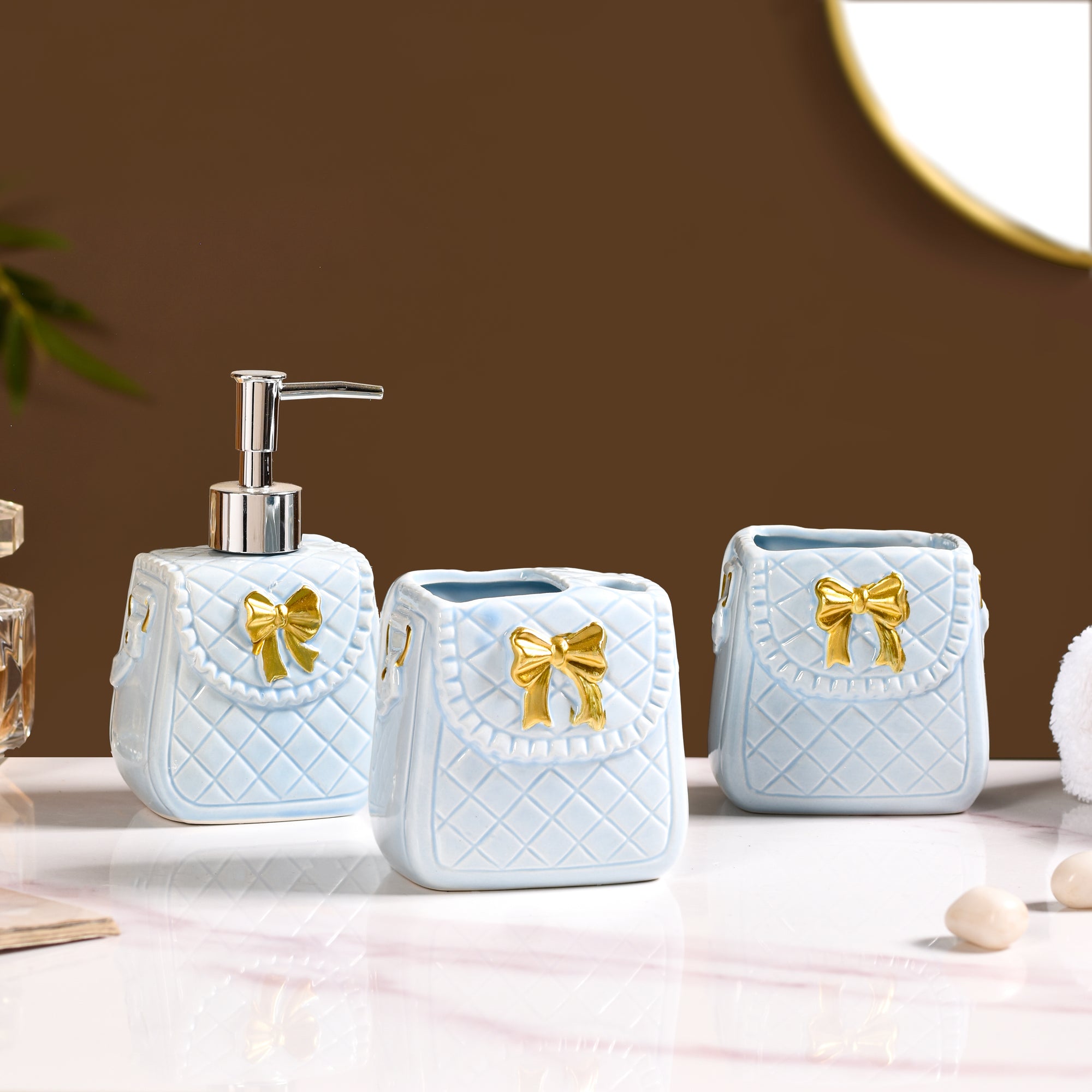Bow Detail Blue Ceramic Bath Accessories Set Of 3