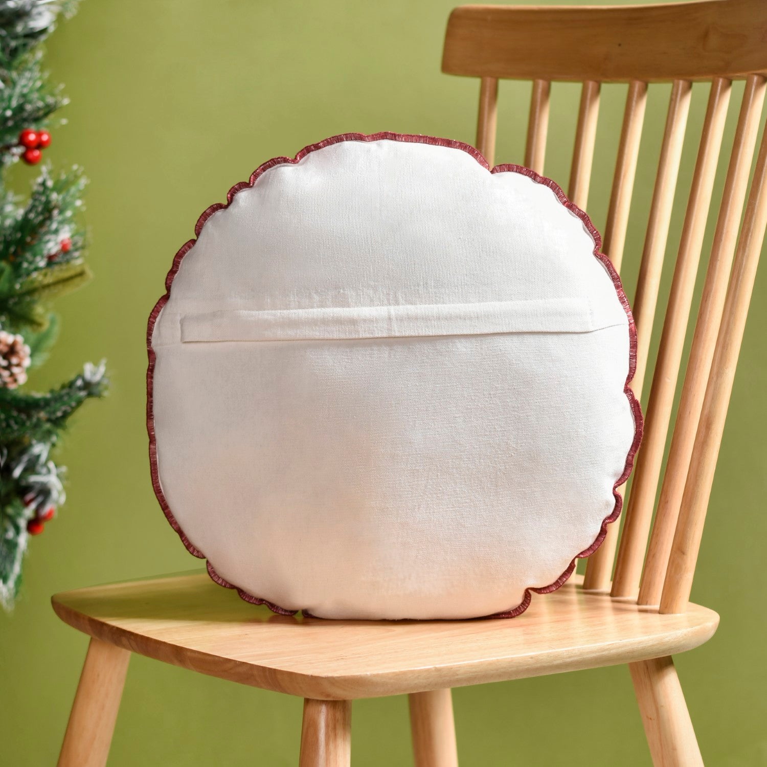 Bring festive flair to your home with this round Christmas cushion cover made from 100% cotton slub fabric. The bold red and white bow design and deep red piping make this Christmas home decor essential a vibrant and cheerful accent for your holiday interiors.