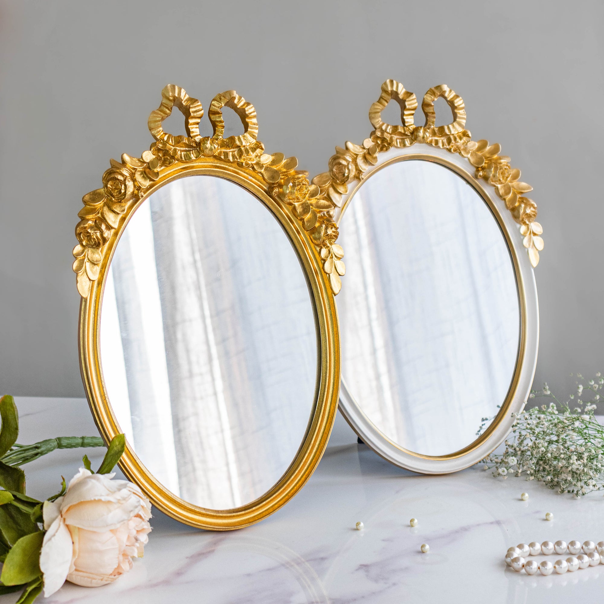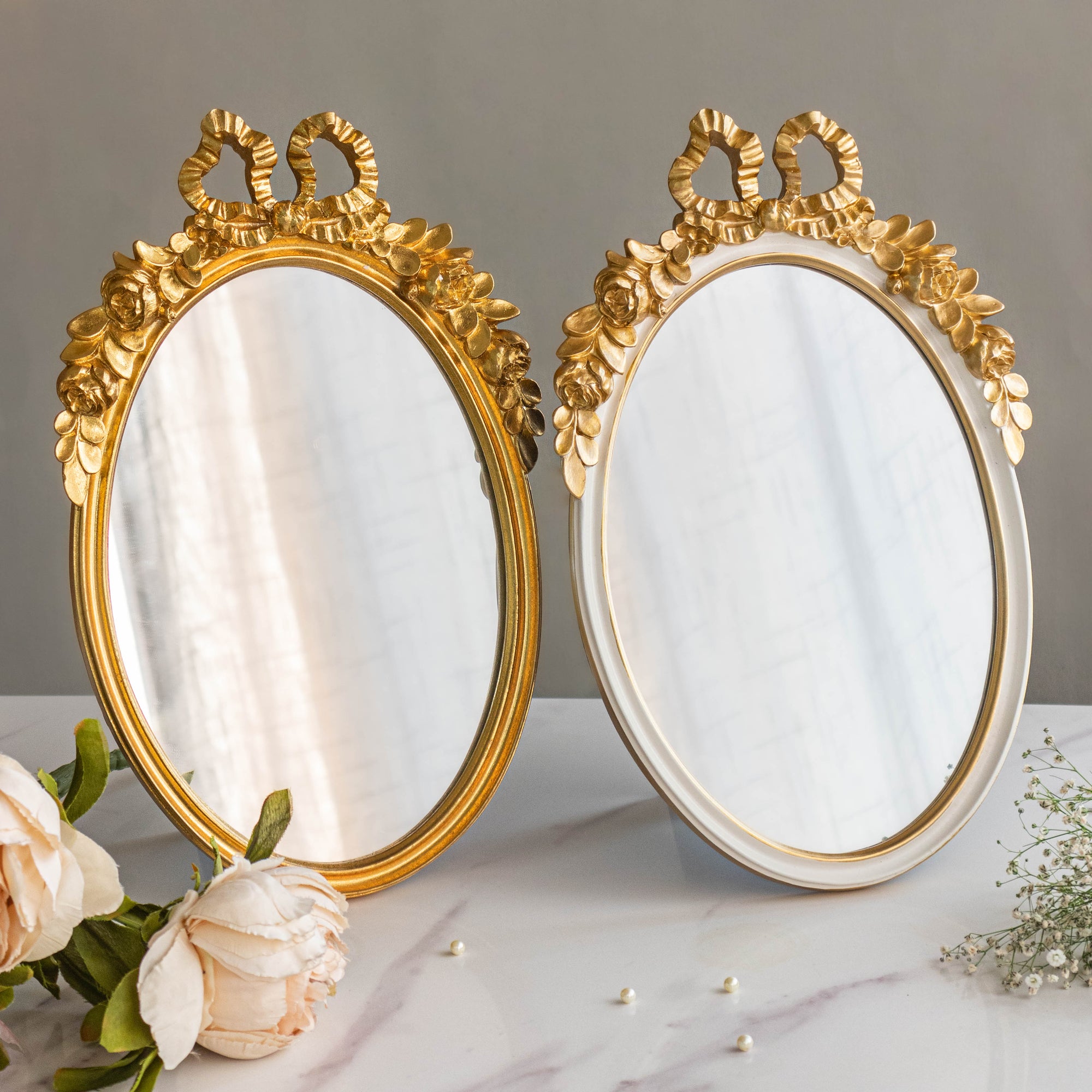 The bow designed make-up mirror will spruce up the dull walls of any living space with a Victorian touch. The Victorian style mirror comes in two variant frames of white and gold. It is embellished with floral patterns and the frame has a rustic charm to it.
