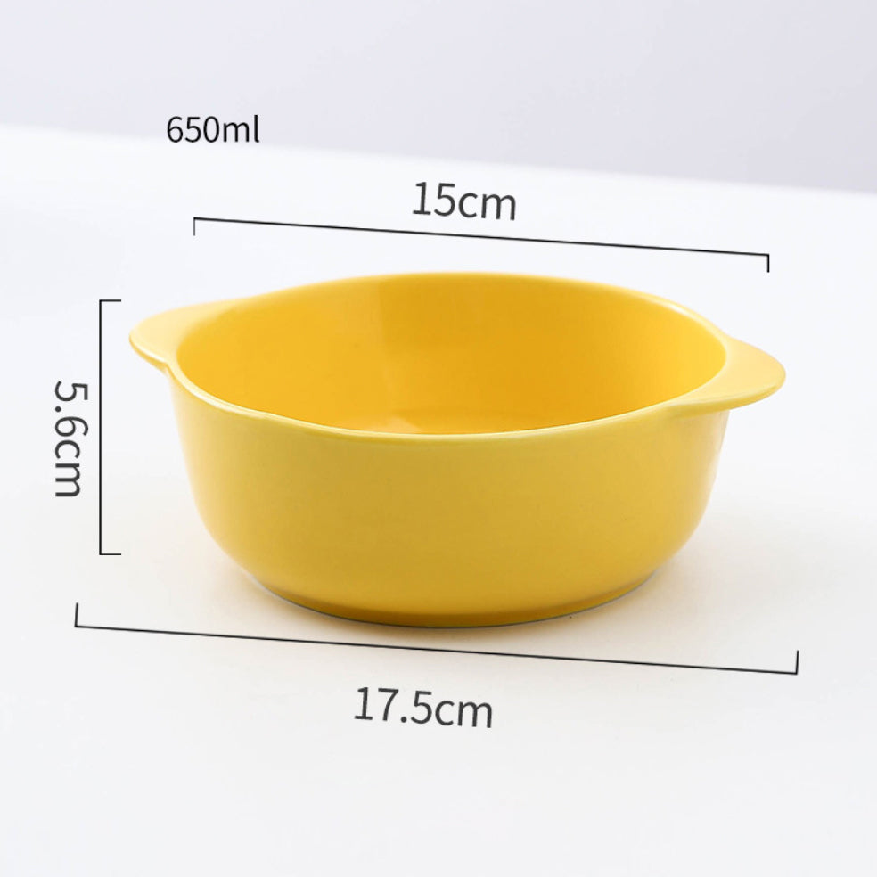 The bowl for baking is just right for being used as a baking bowl as well as a serving bowl for snacks and meals. The ceramic bowl come with a handle on each side, making them easy to pick and place. The colourful baking bowl can be used for grilling different food items like cakes, eggs, meat, pasta and more in the microwave. Small and large bowls can be paired together to create a bowl set.