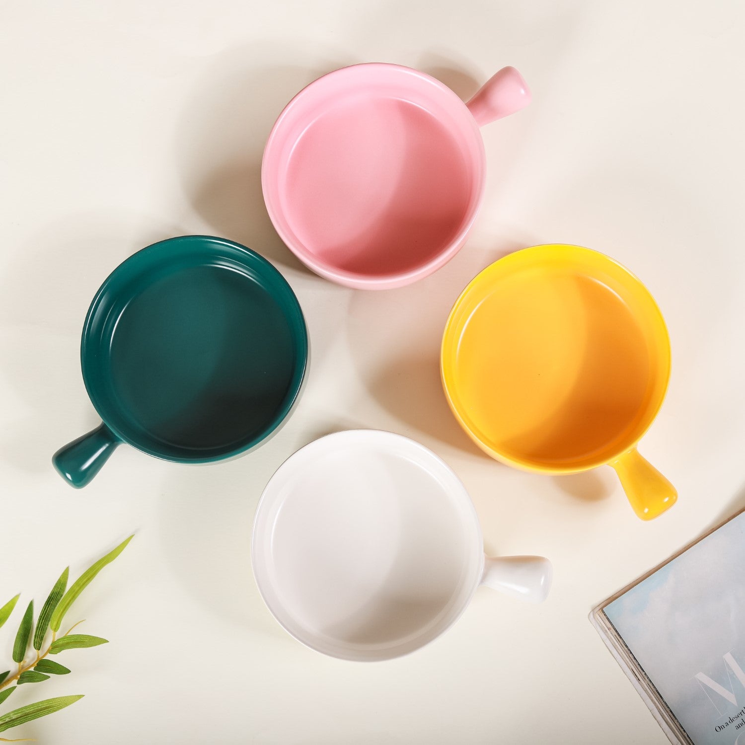 Colourful baking bowls are oven friendly, so they can be used in cooking and baking. The baking dishes come with a handle which make them user friendly. They can be used in baking different kinds of desserts such as cakes and cookies or snacks and kebabs.