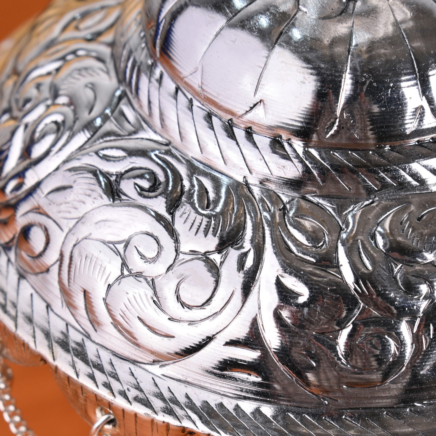 Benefits: Brass offers strength, corrosion resistance, and longevity for daily spiritual rituals. The rounded dome shape provides visual harmony and directs focus to the idol beneath. Its minimal yet detailed style suits both classic and contemporary pooja settings. Being lightweight, it is easy to suspend or reposition as needed. The reflective silver finish brightens up the mandir without overwhelming other decor.