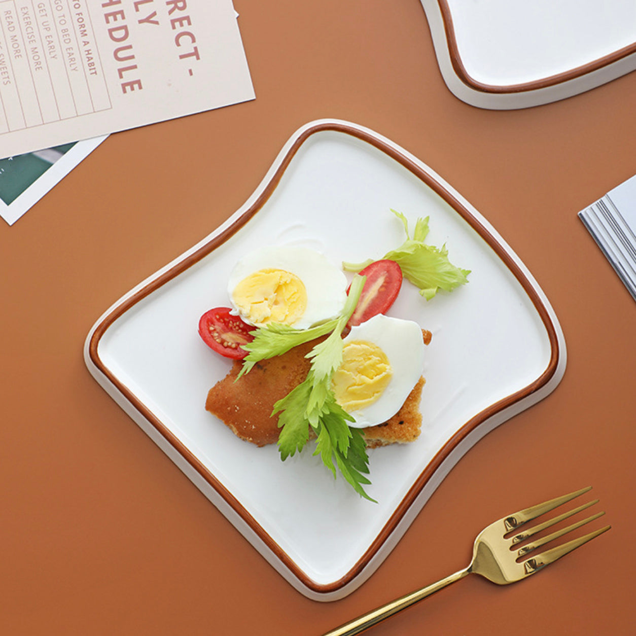 Since the snack plate has a unique bread-shaped design, the best way to use the ceramic plate is to serve snacks to your guests. Or, you can also use the snack plate to set up a trendy table decor. You can pair the snack plate with other dinnerware pieces of similar colours to create a cohesive table setup. The snack plate is also suitable for serving fresh fruits or breakfast bread toasts.