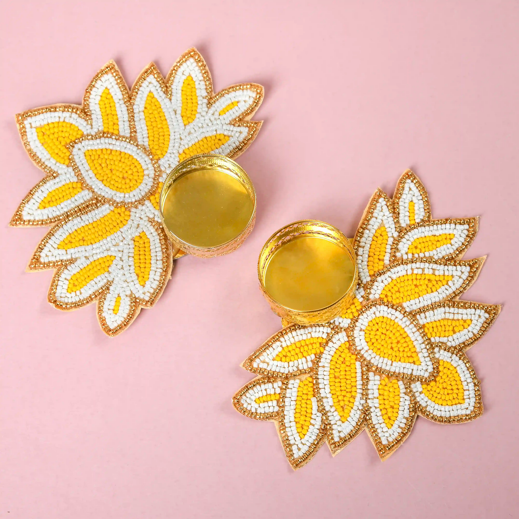 Cleaning the lotus-shaped tealight holders is effortless. It is advised to remove the tealights from the holders first. Then, using a damp cloth, gently wipe the holders to remove any residue or wax. It's essential to avoid submerging them in water, as this could damage the holders or affect their appearance.