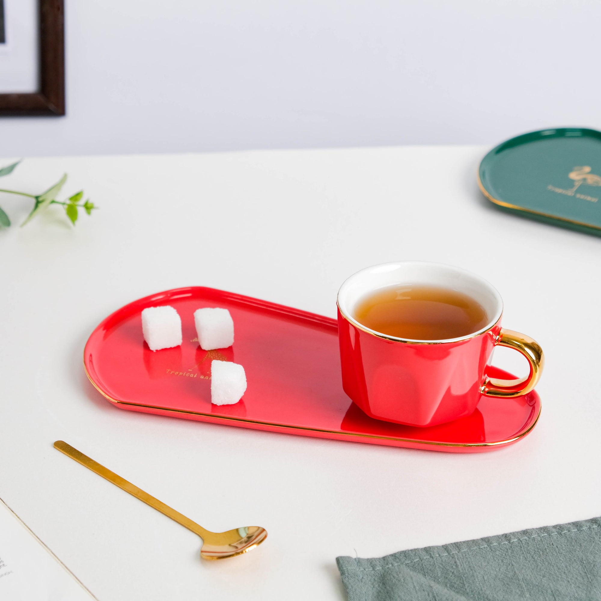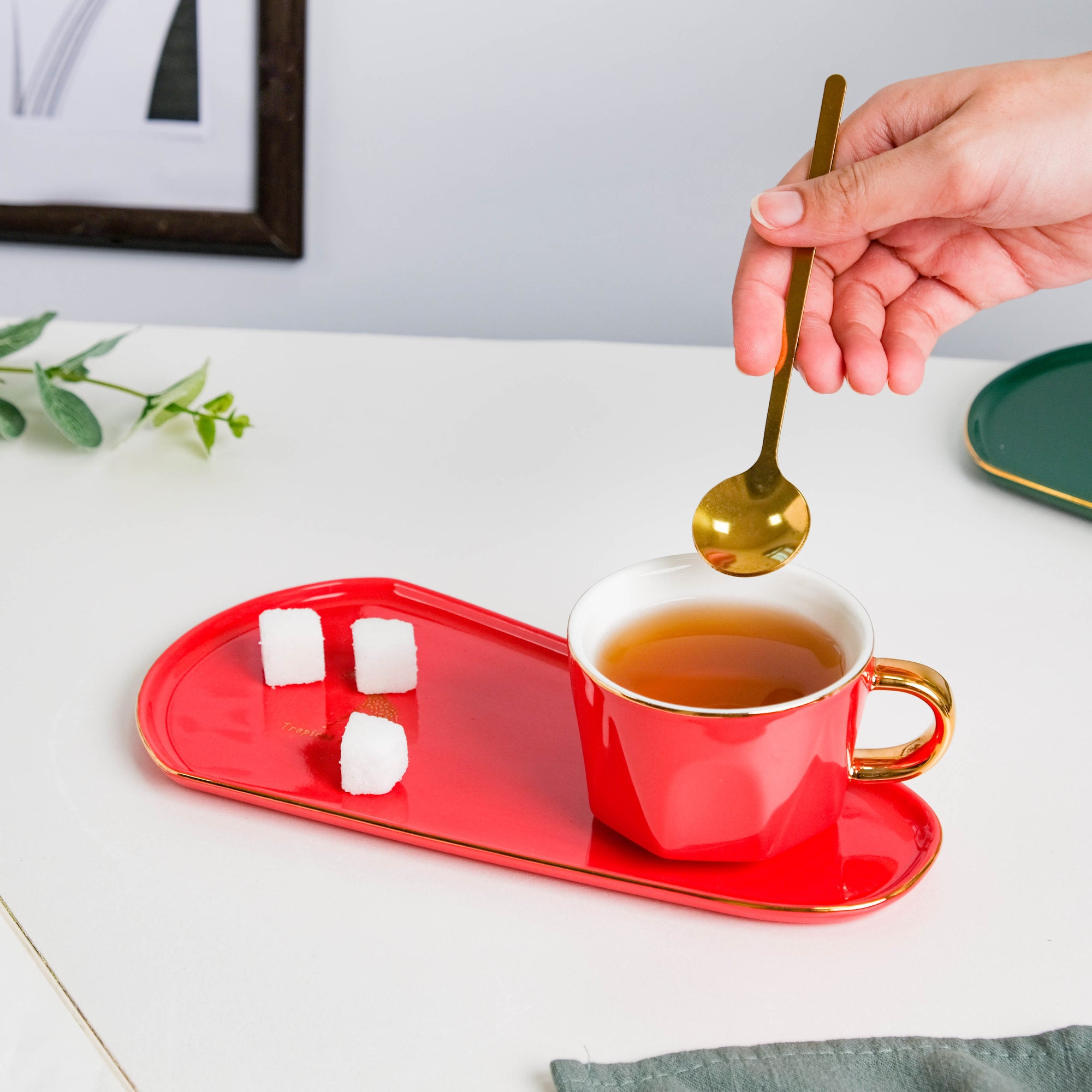 Brewtiful Glazed Ceramic Cup and Tray Set Red 150 ml